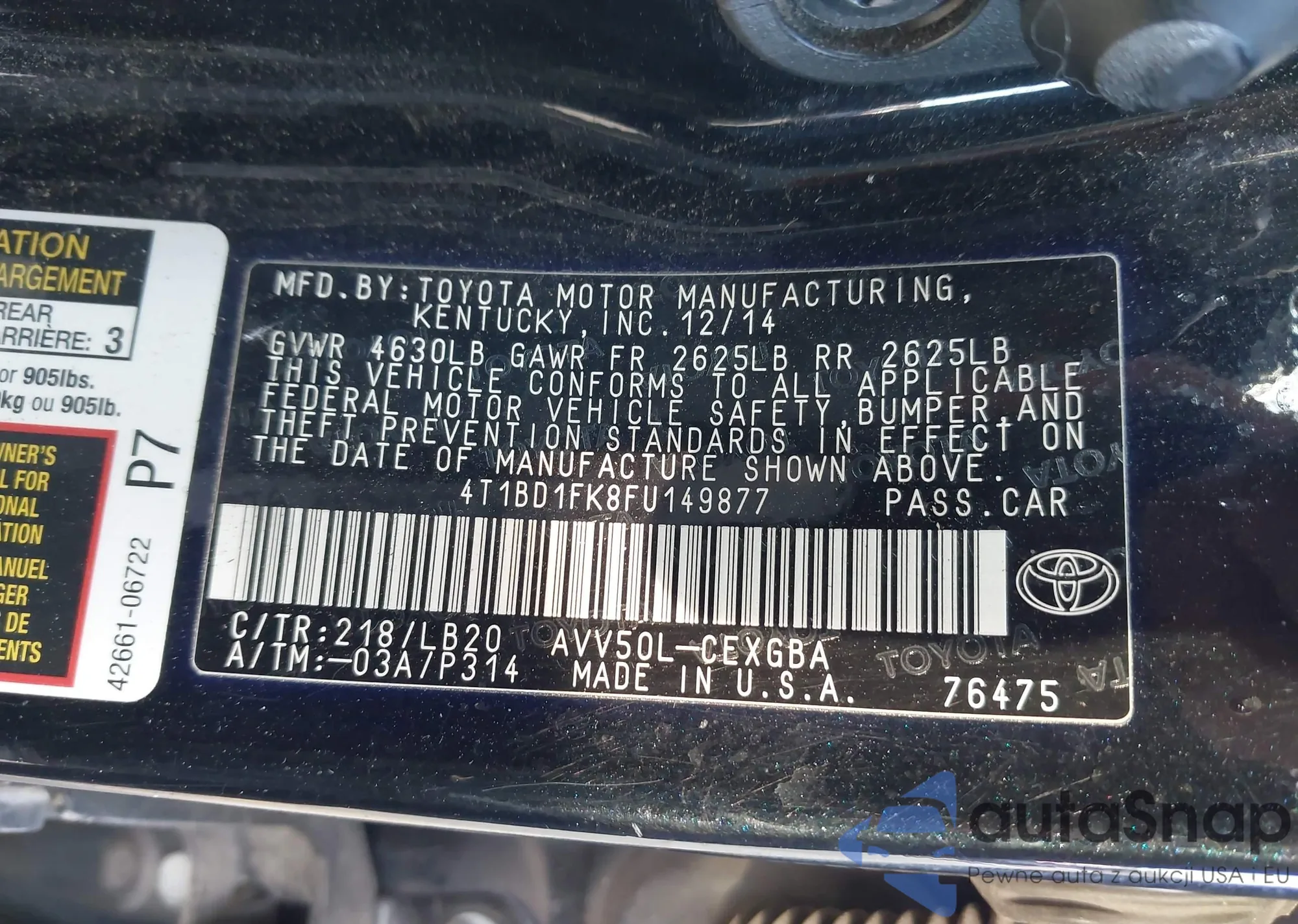 • VIN 4T1BD1FK8FU149877
