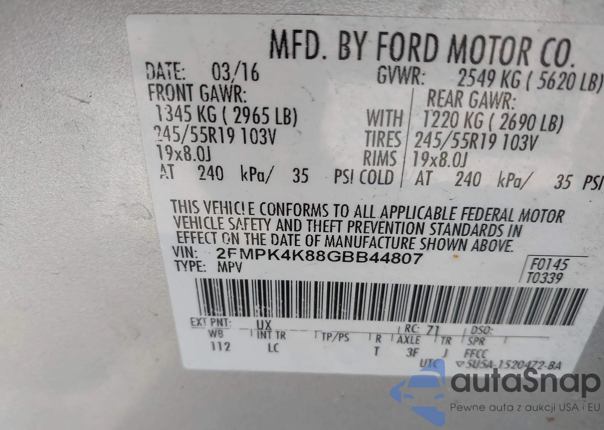 • VIN 2FMPK4K88GBB44807
