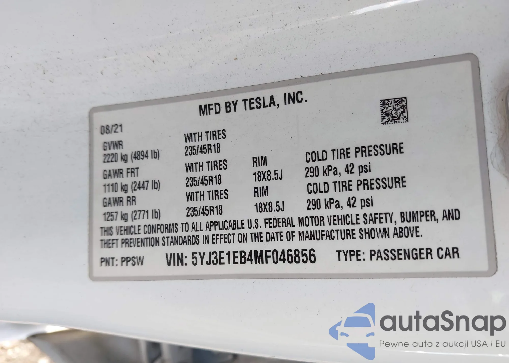 • VIN 5YJ3E1EB4MF046856