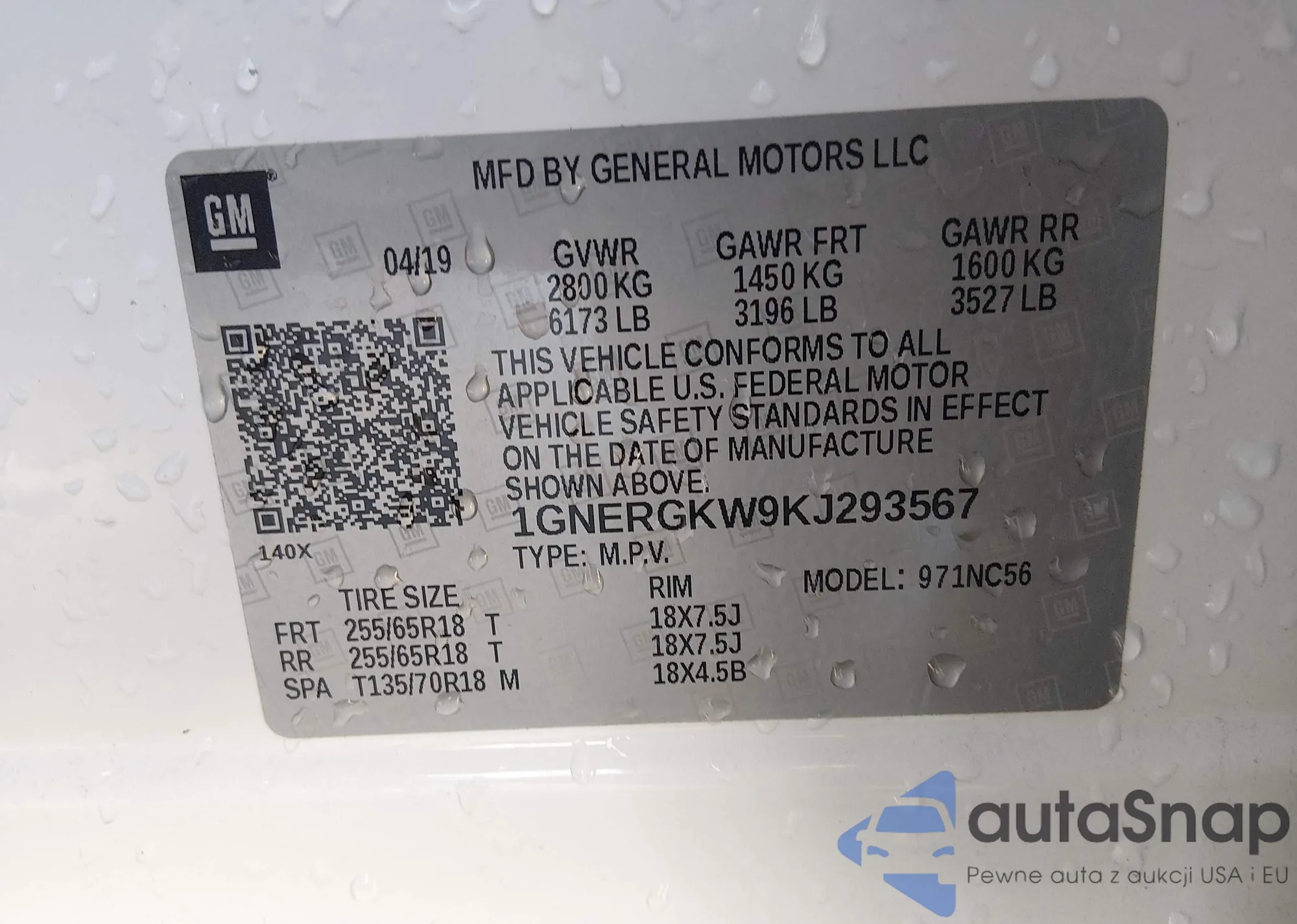 LOT: 44094927 VIN: 1GNERGKW9KJ293567