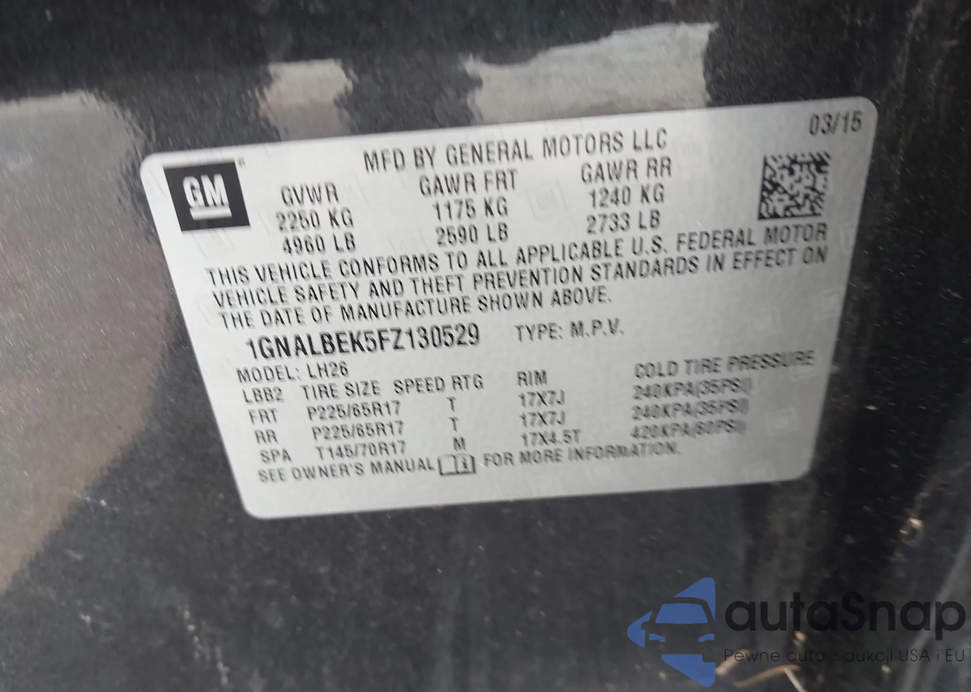LOT: 44271206 VIN: 1GNALBEK5FZ130529