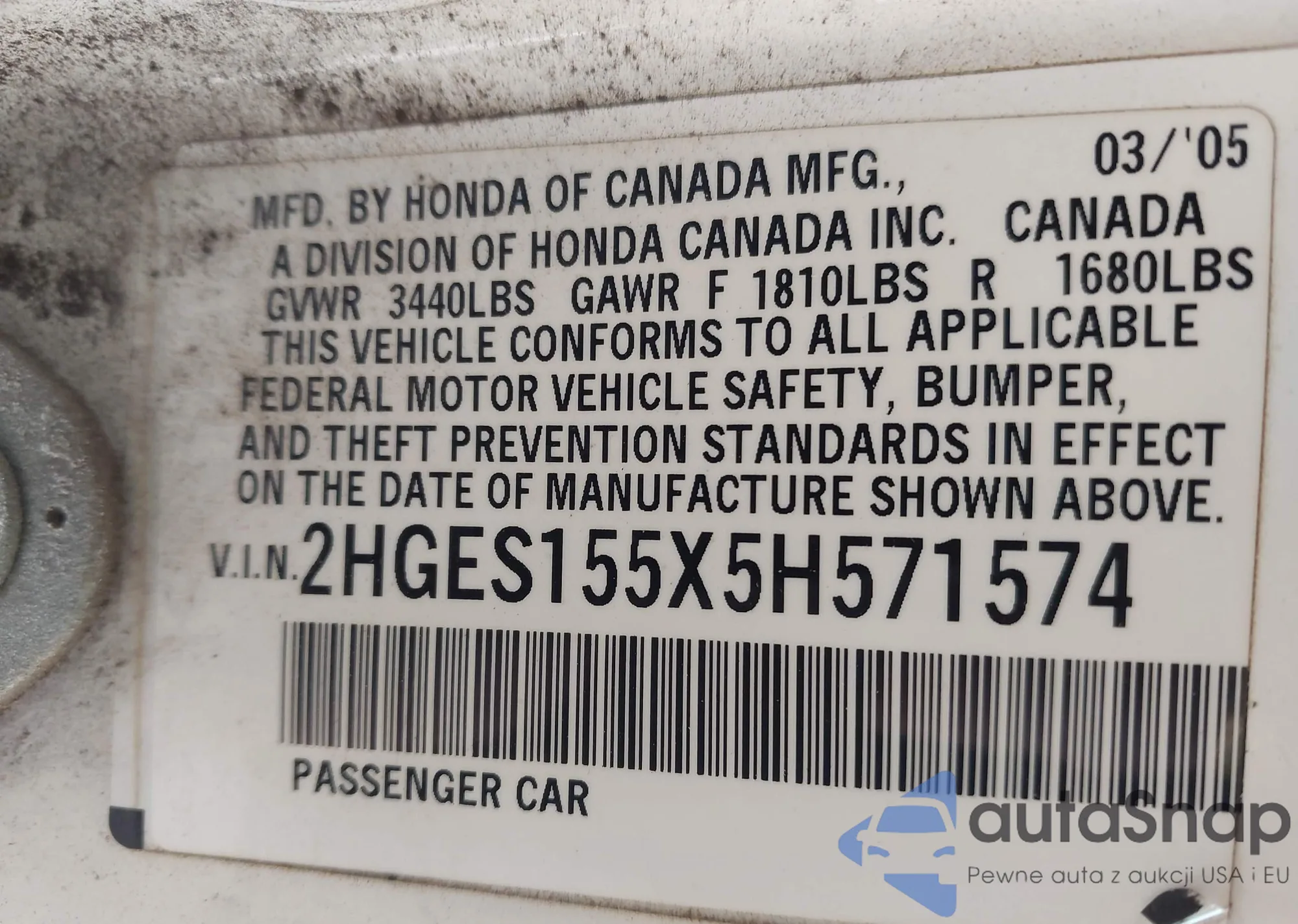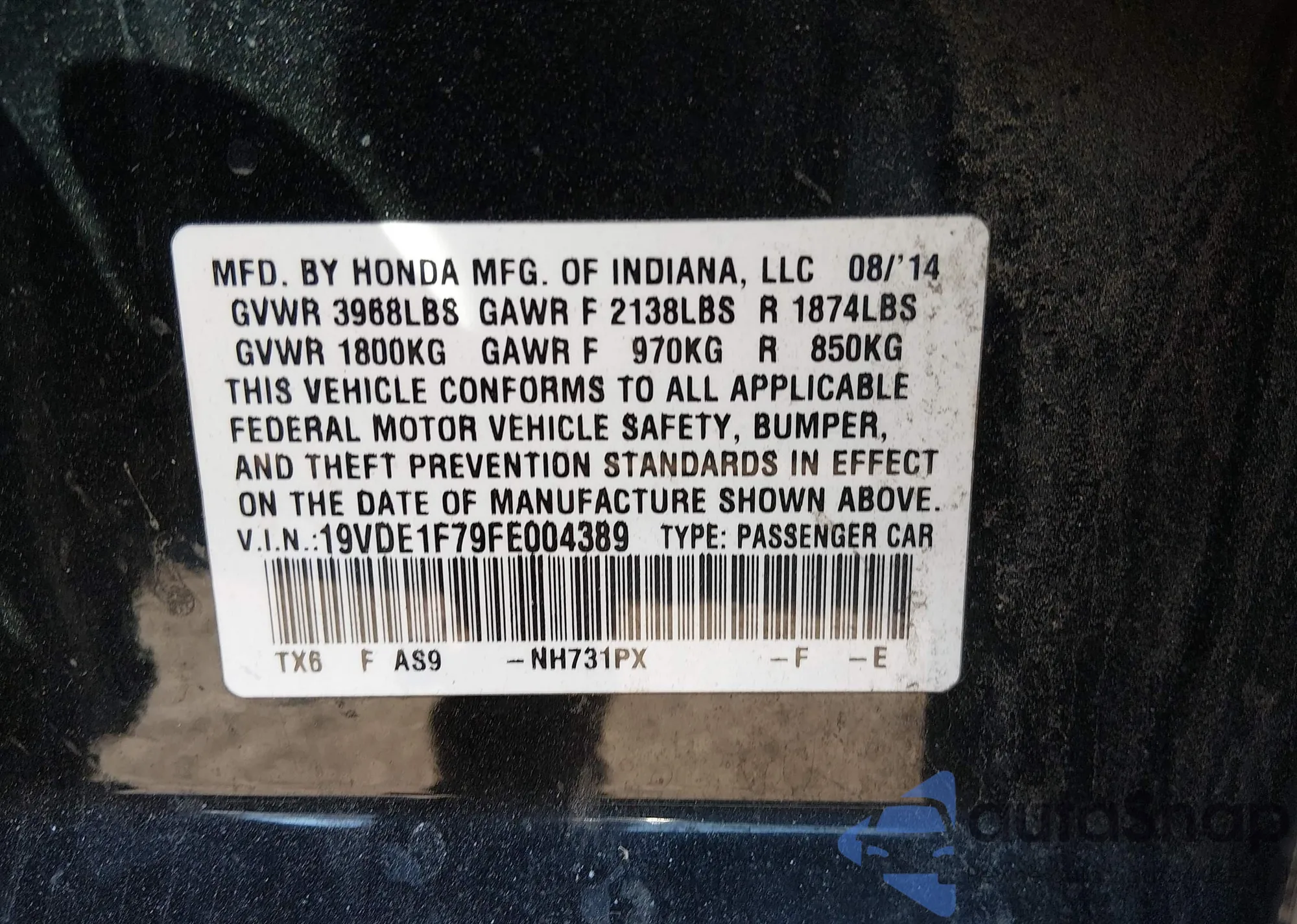 • VIN SHHFK7H46JU222371
