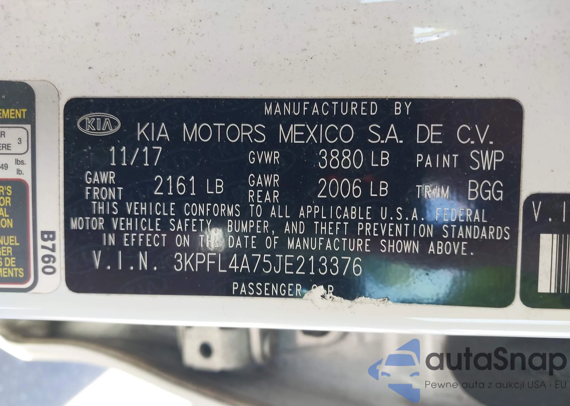 • VIN 3KPFL4A75JE213376