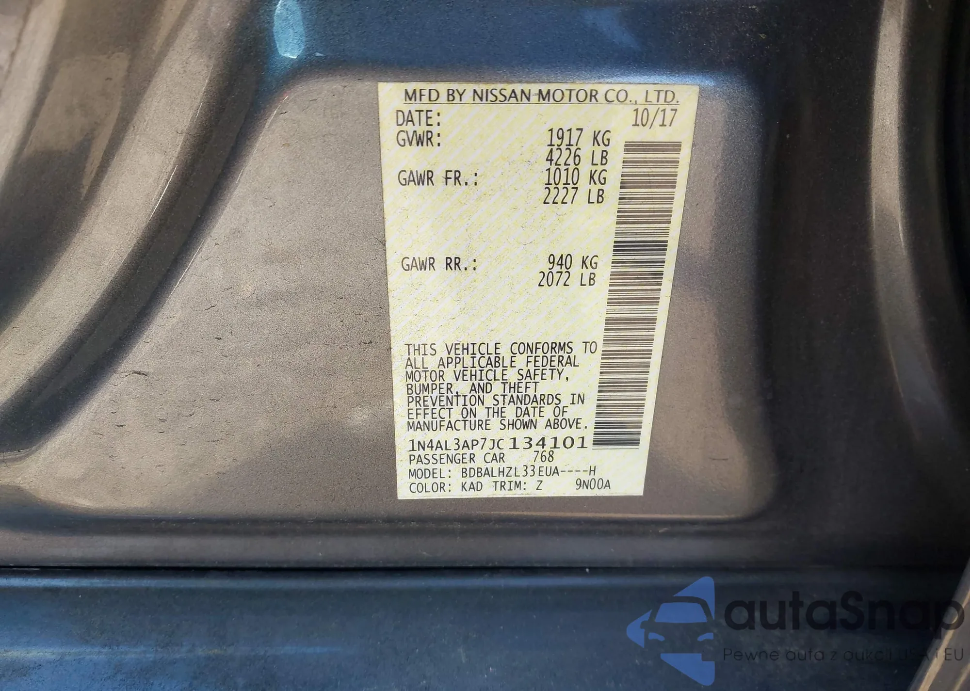 LOT: 43919836 VIN: 1N4AL3AP7JC134101