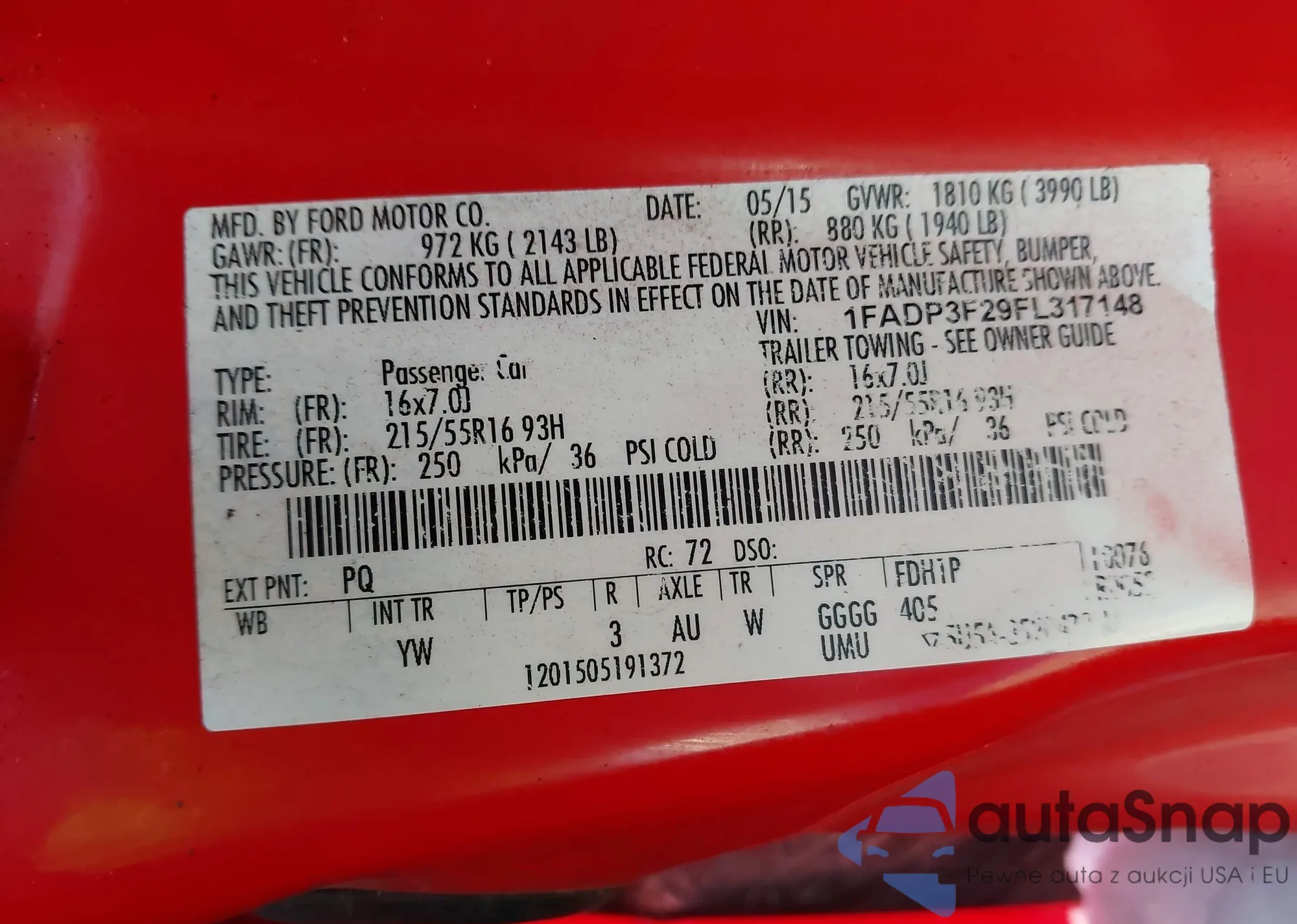 LOT: 44166750 VIN: 1FADP3F29FL317148