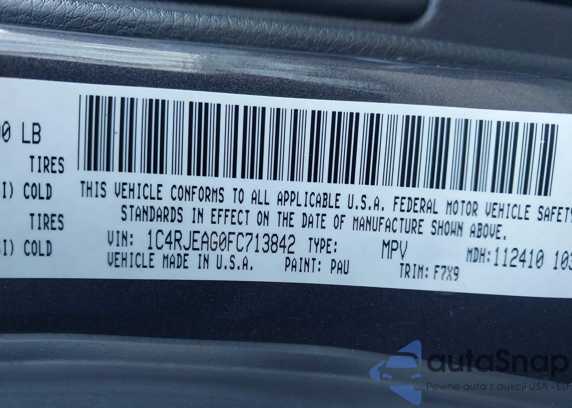 • VIN 1C4RJEAG0FC713842