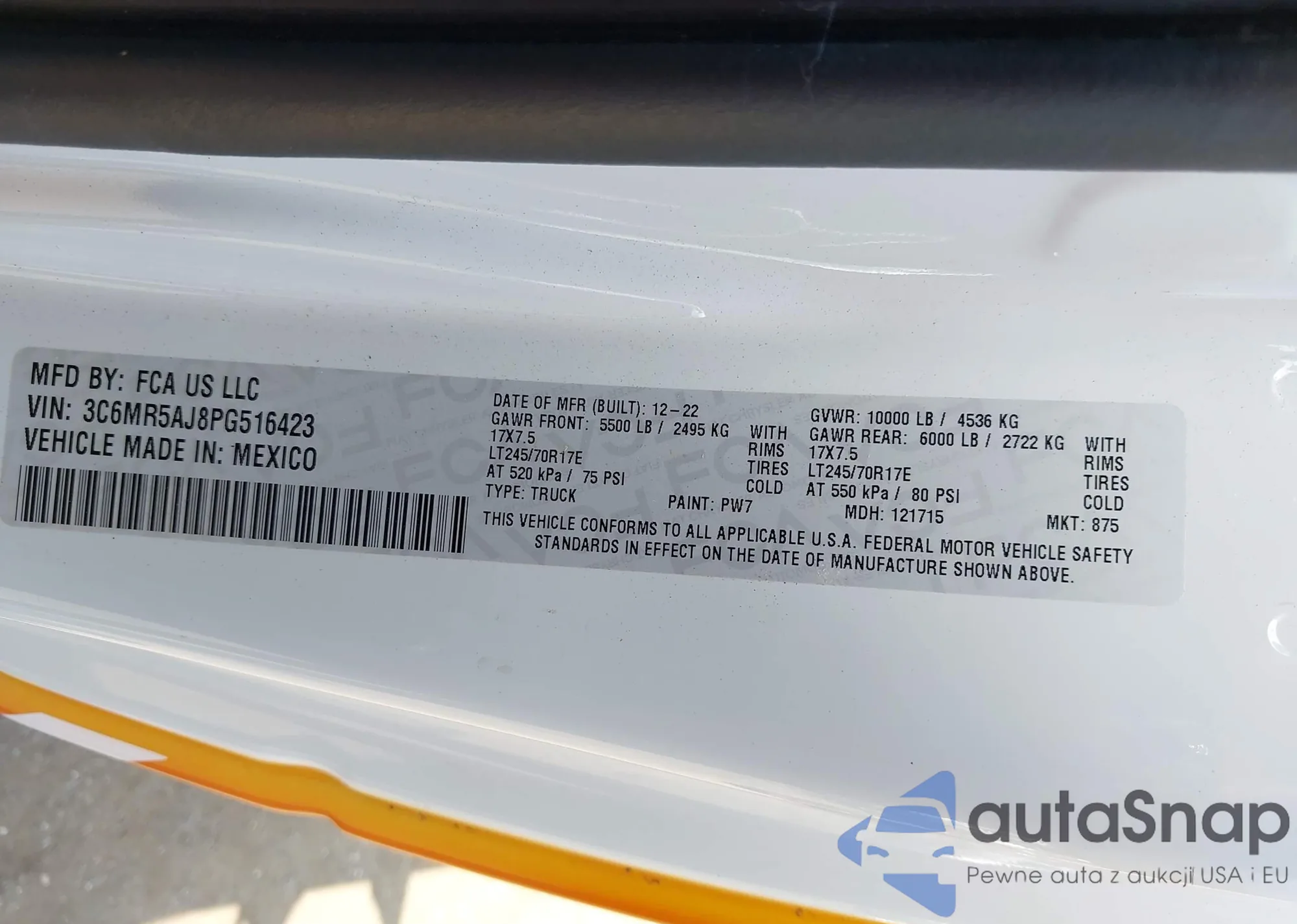 • VIN 3C6MR5AJ8PG516423