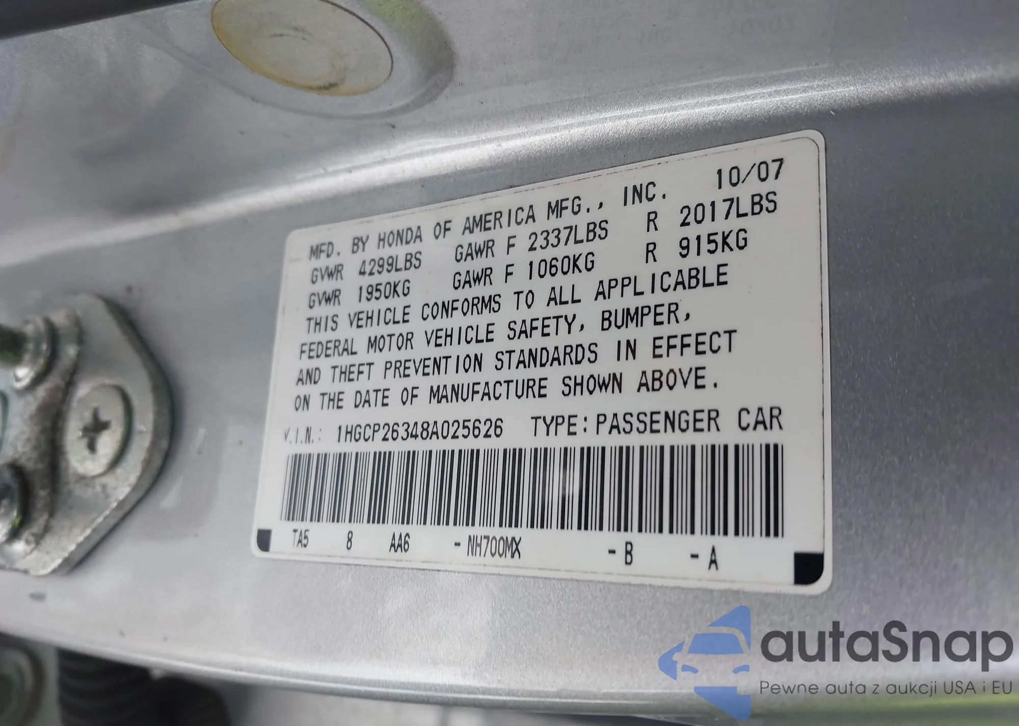 • VIN 1HGCP26348A025626