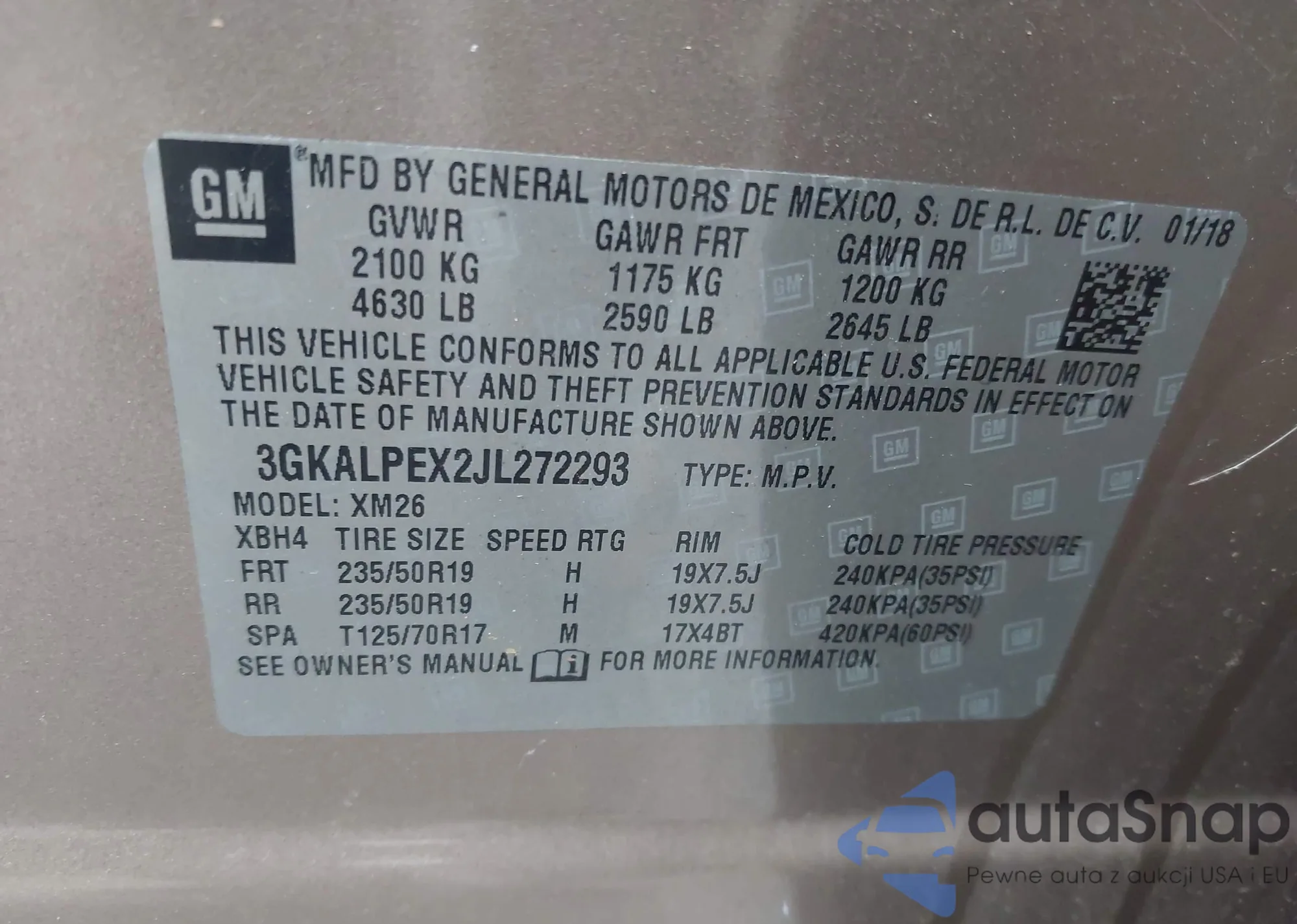 • VIN 3GKALPEX2JL272293