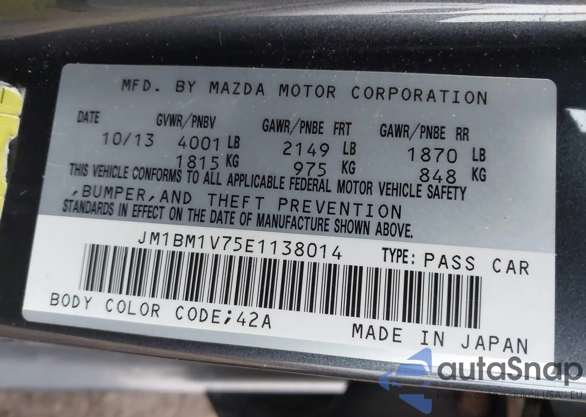 LOT: 44023618 VIN: JM1BM1V75E1138014