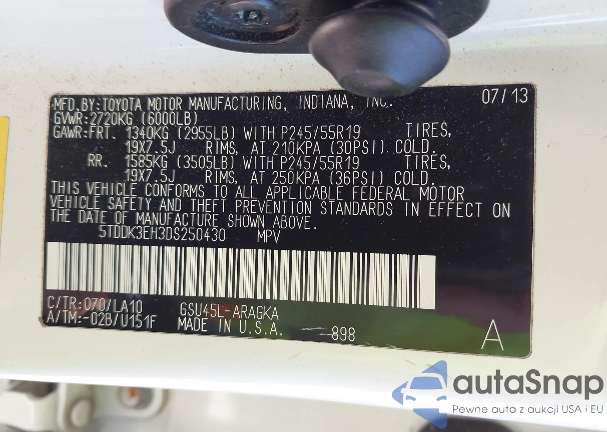 • VIN 5TDDK3EH3DS250430