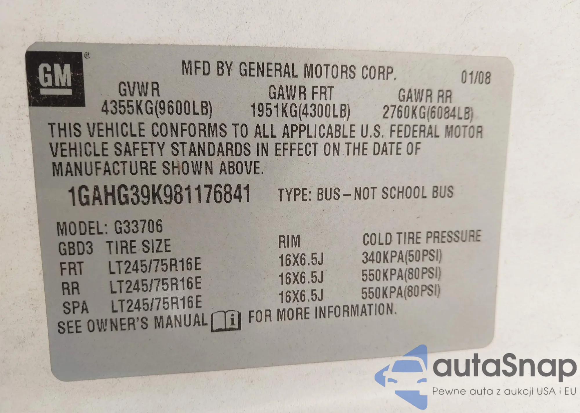 • VIN 1GAHG39K981176841