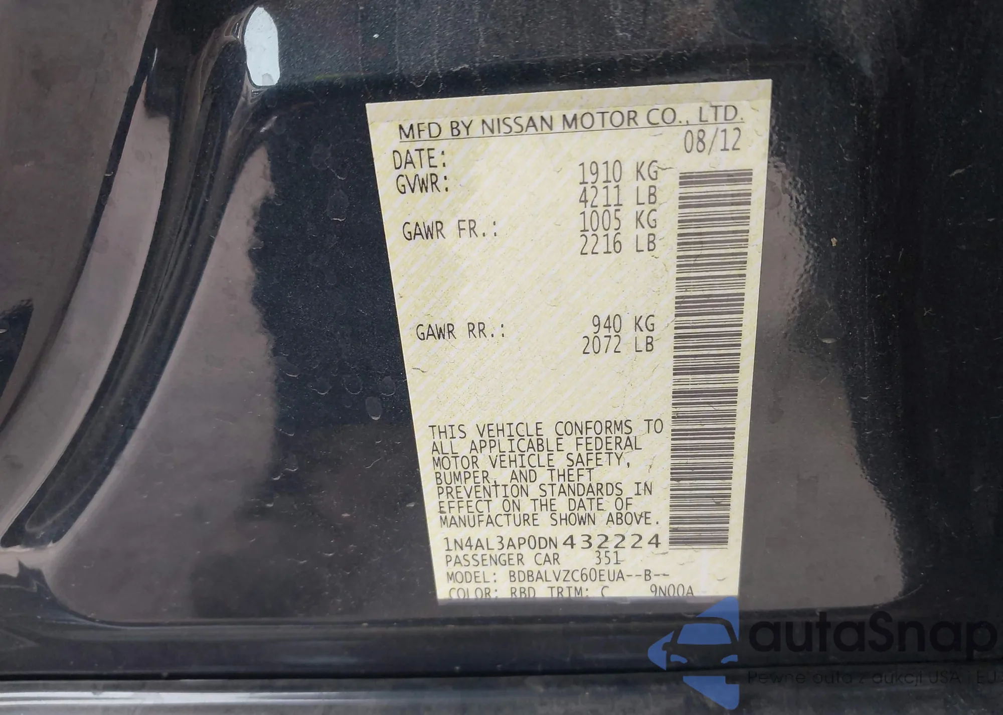 • VIN 1N4AL3AP0DN432224