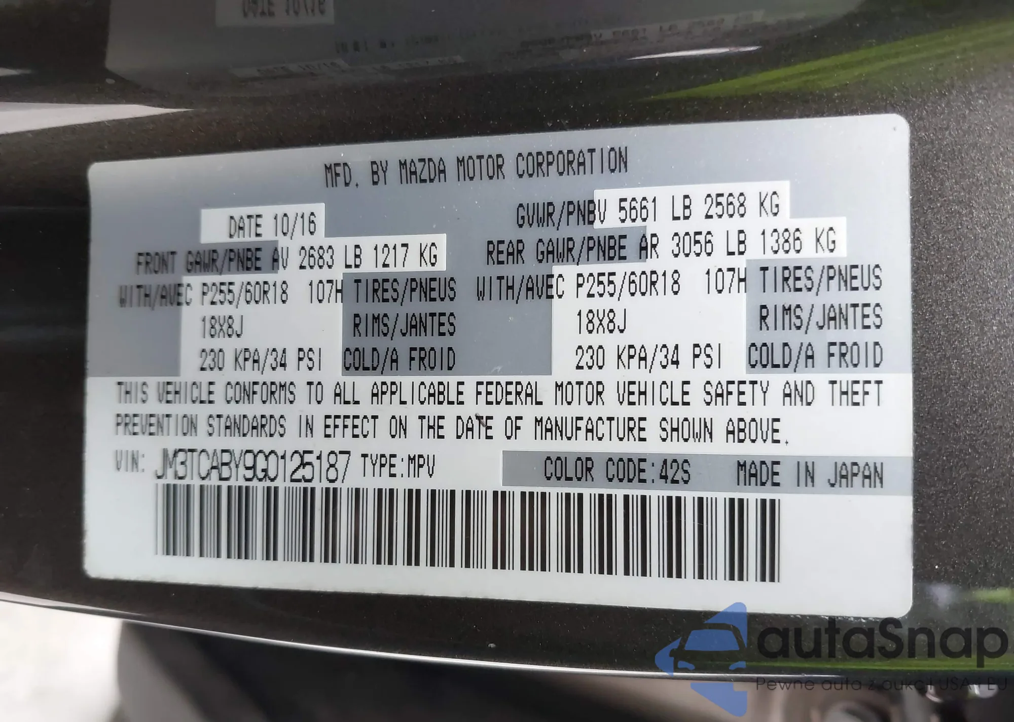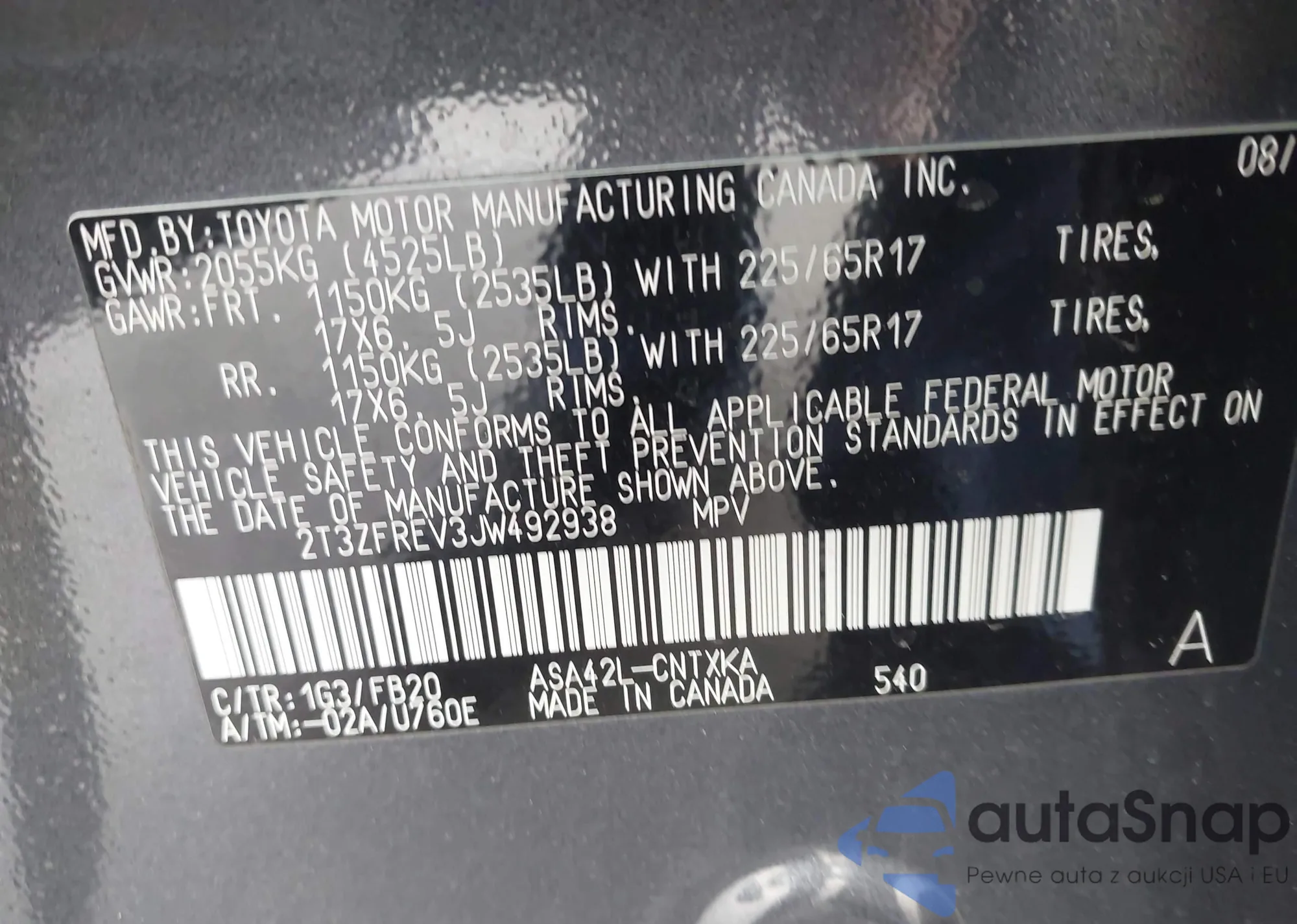 LOT: 44345880 VIN: 5UXTR9C59JLD60979