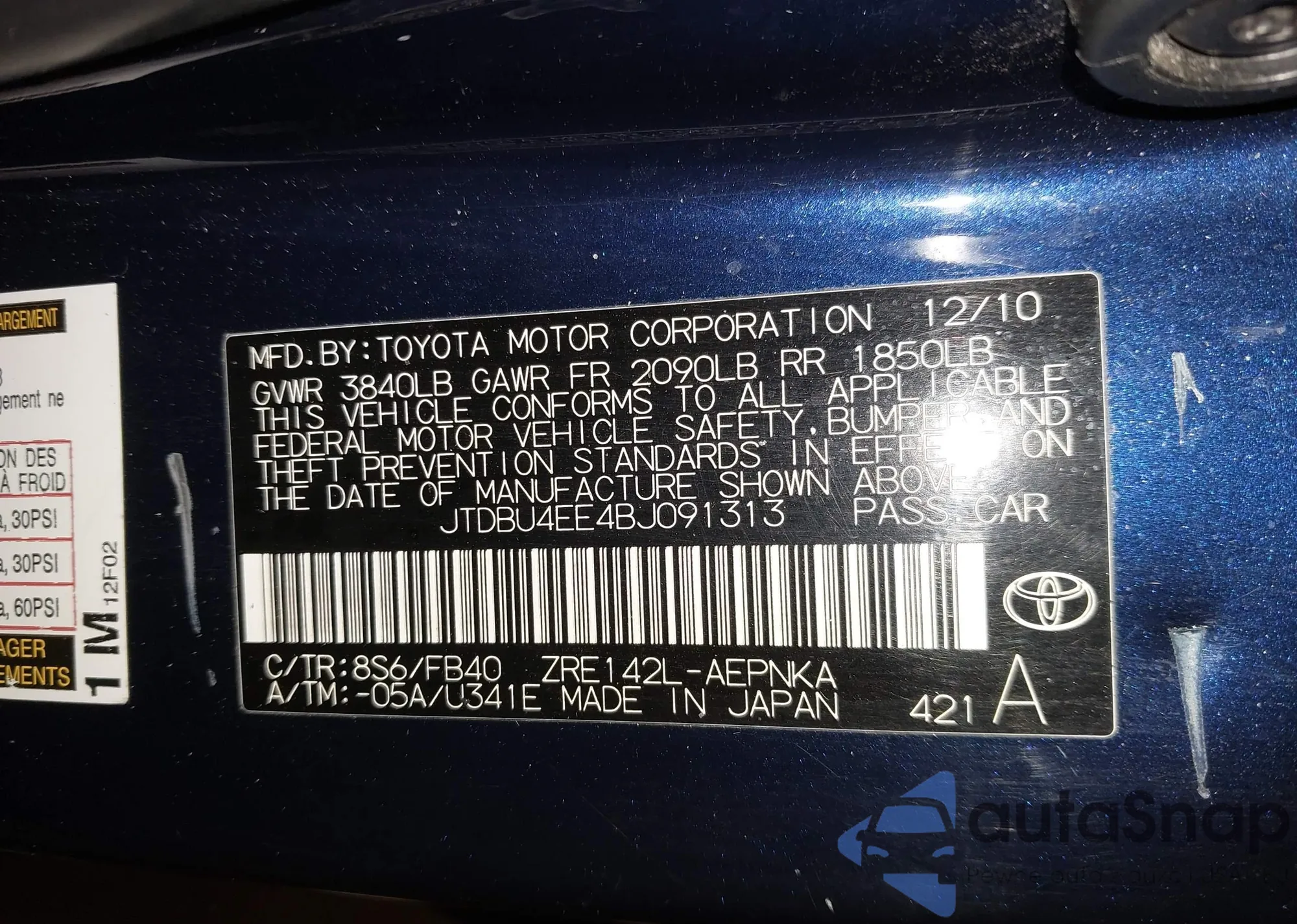 LOT: 44431653 VIN: JTDBU4EE4BJ091313