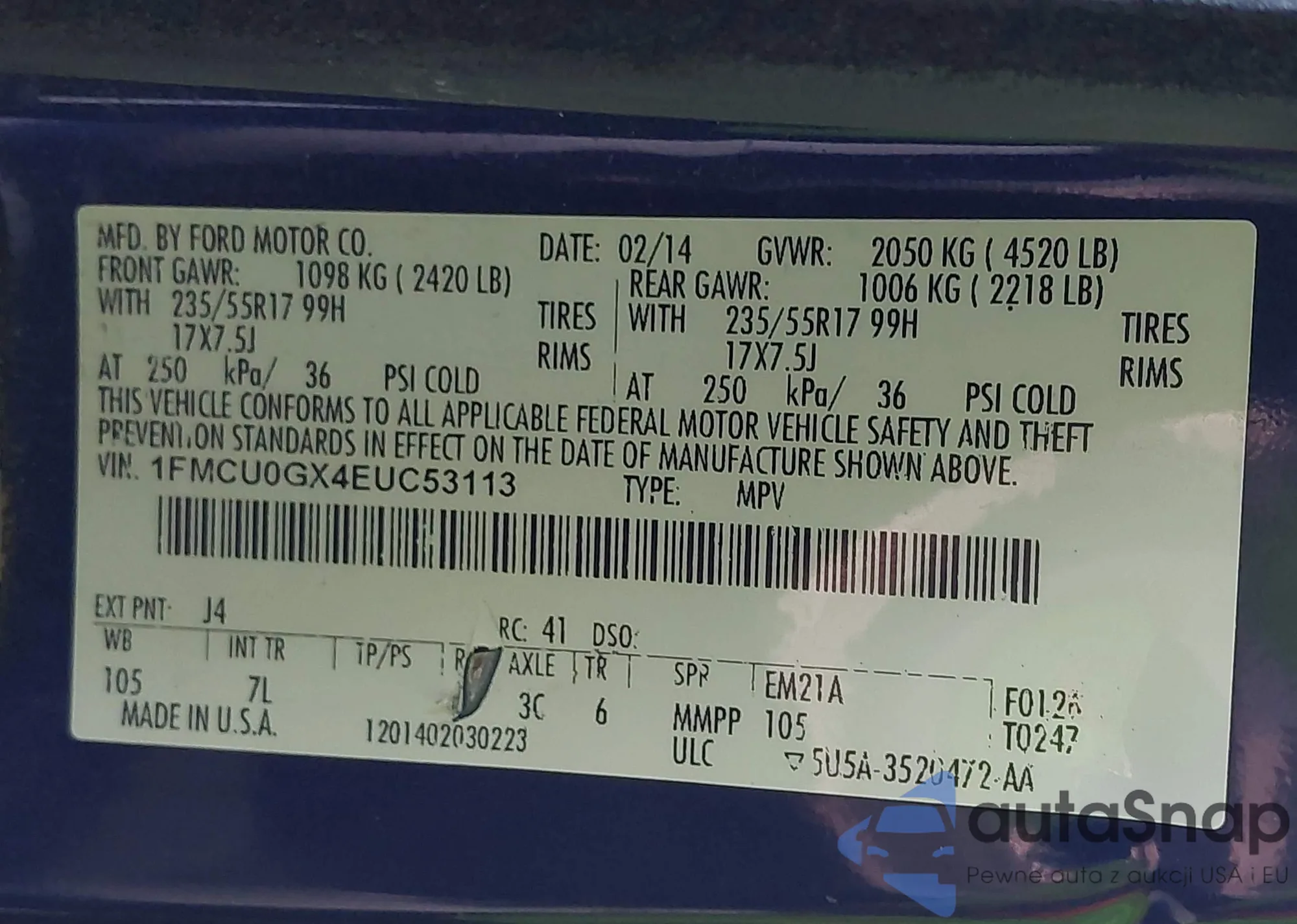 • VIN 1FMCU0GX4EUC53113