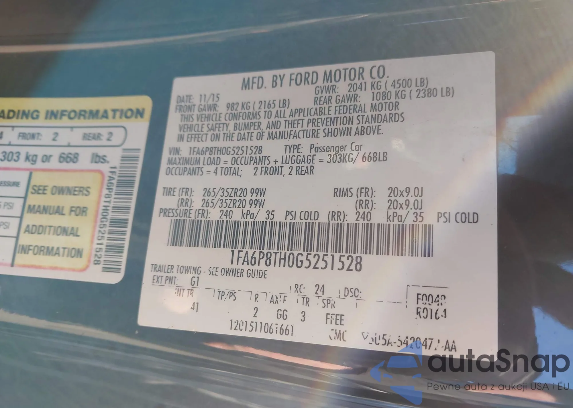 • VIN 1FA6P8CFXP5304475