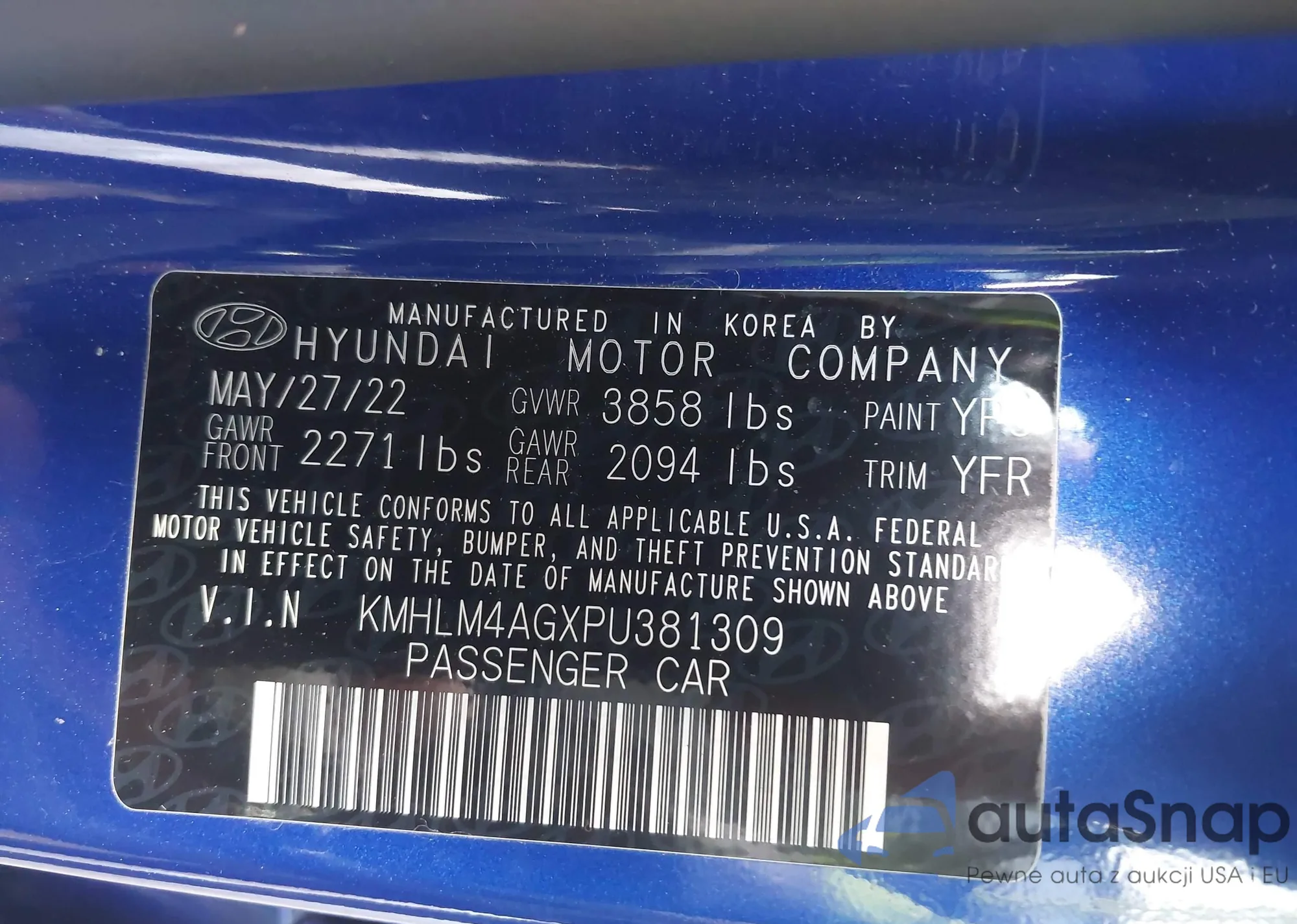 • VIN KMHLM4AGXPU381309