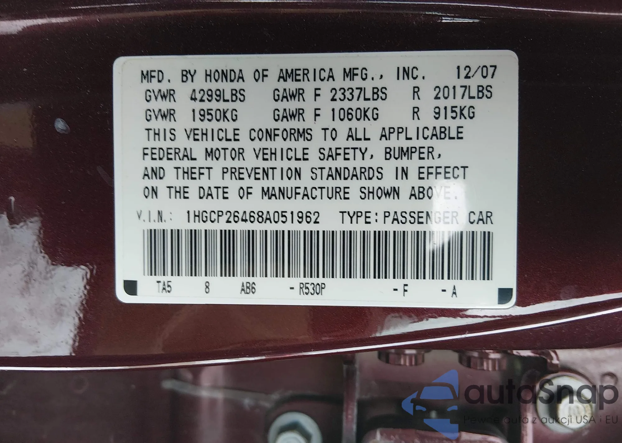 • VIN 1HGCP26468A051962