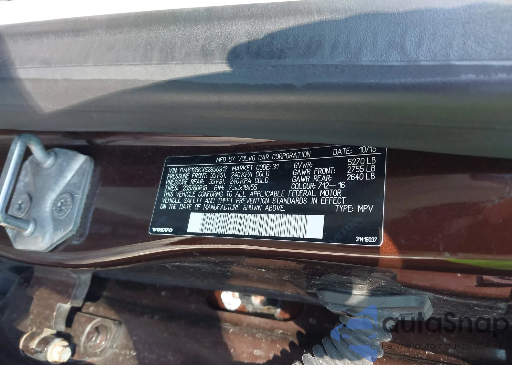 • VIN YV4612RKXG2856912