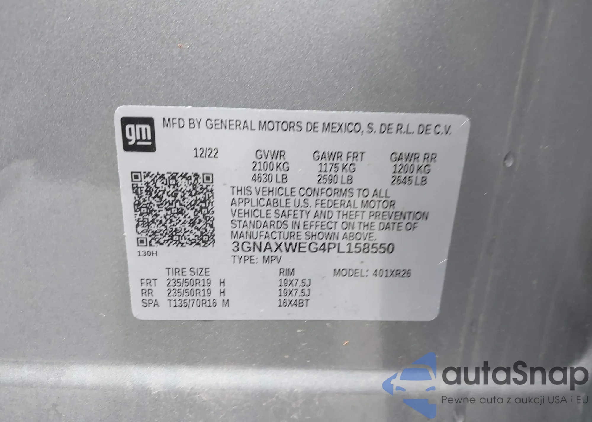 LOT: 44500551 VIN: 5J6RW1H56KA020157