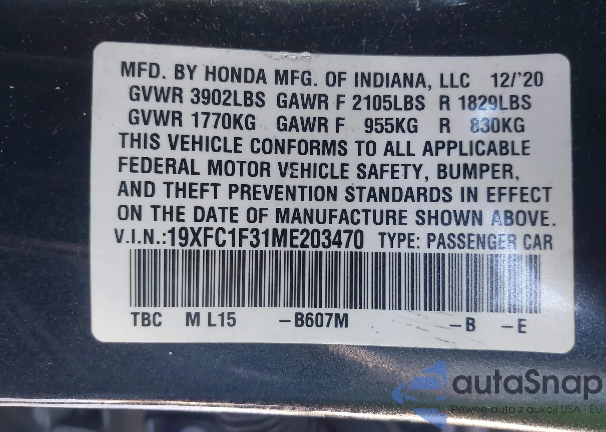 • VIN 5J8YD4H50KL009458