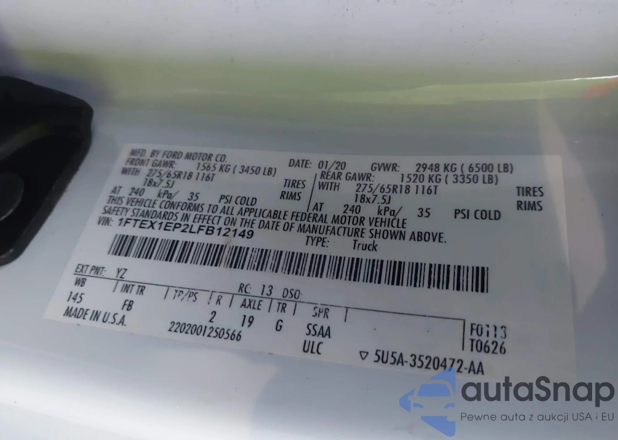 LOT: 44443374 VIN: 1FTEX1EP2LFB12149