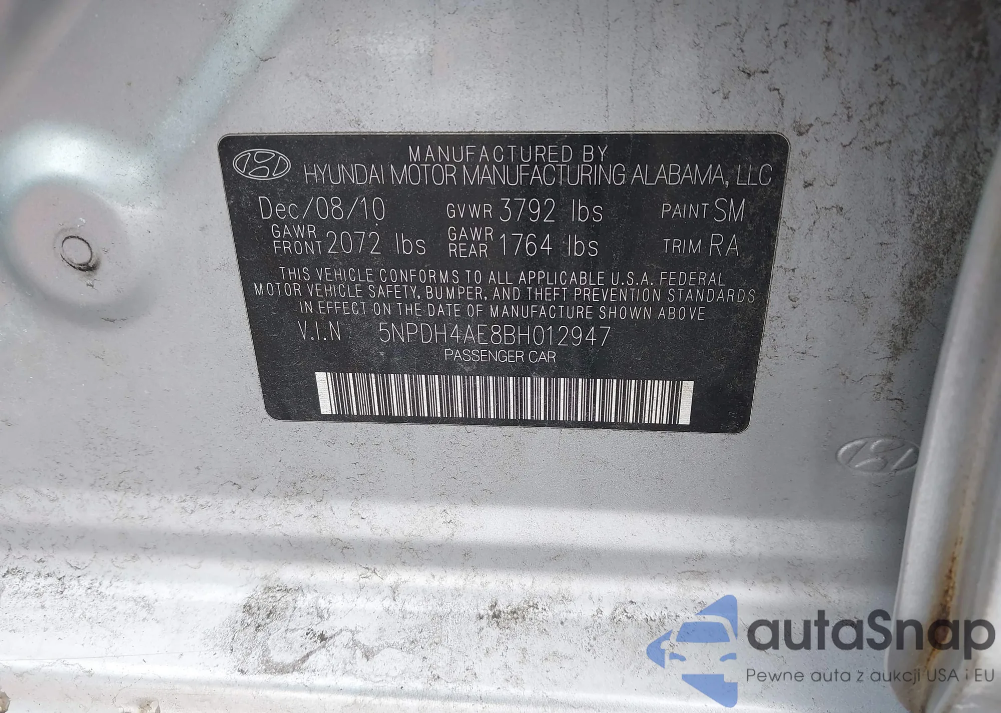 • VIN 5NPDH4AE8BH012947