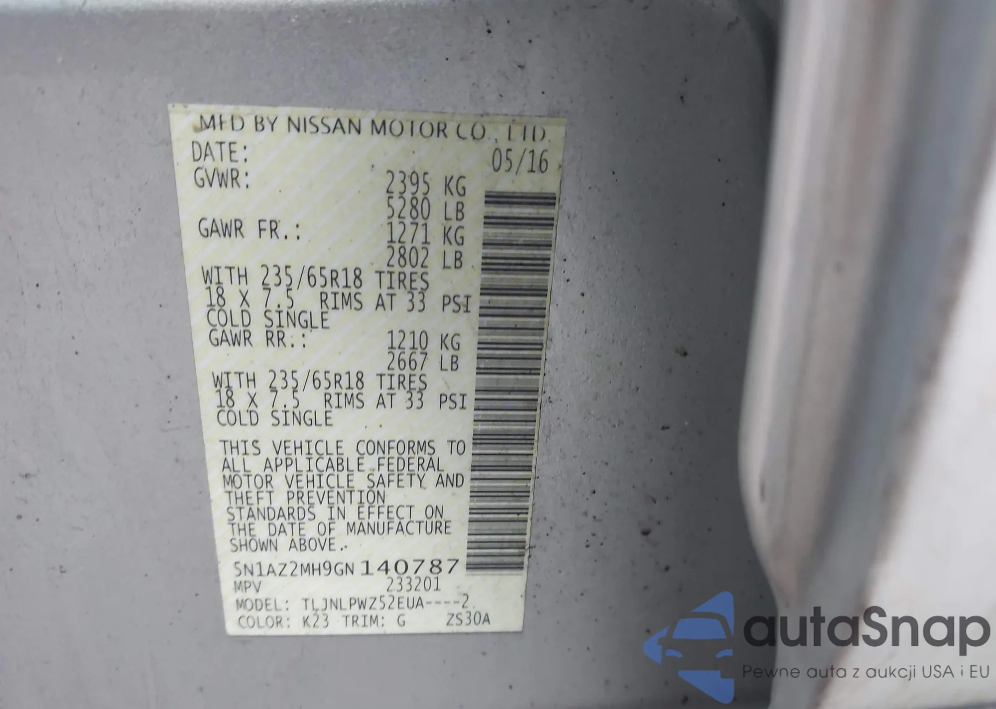 • VIN 5N1AZ2MH9GN140787