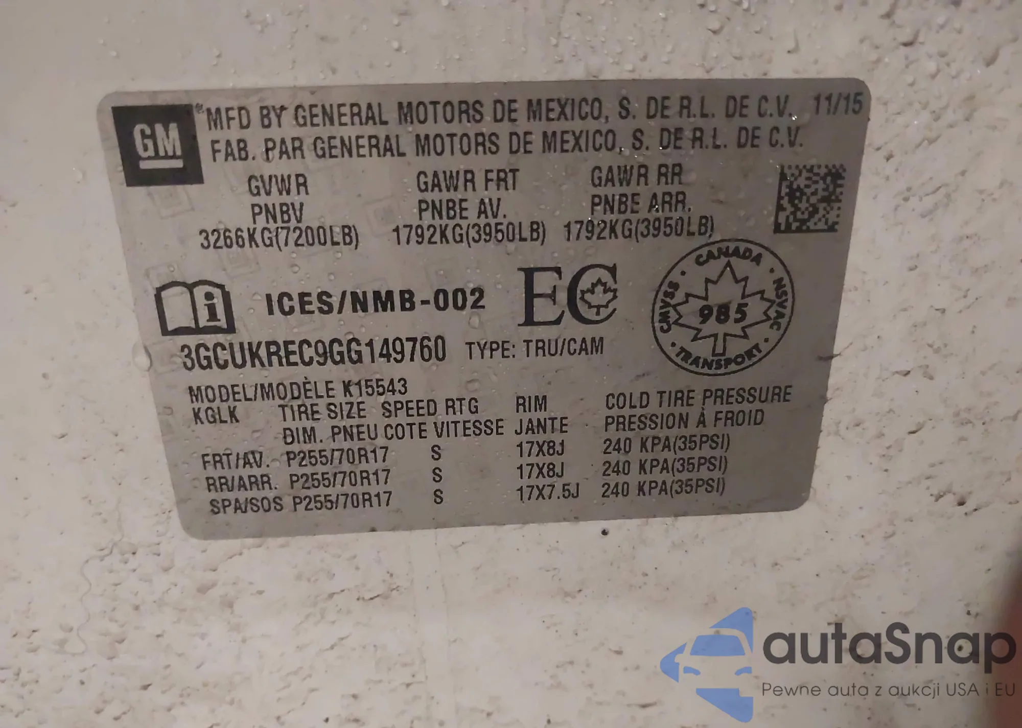 • VIN 1C4AJWAG0FL553481