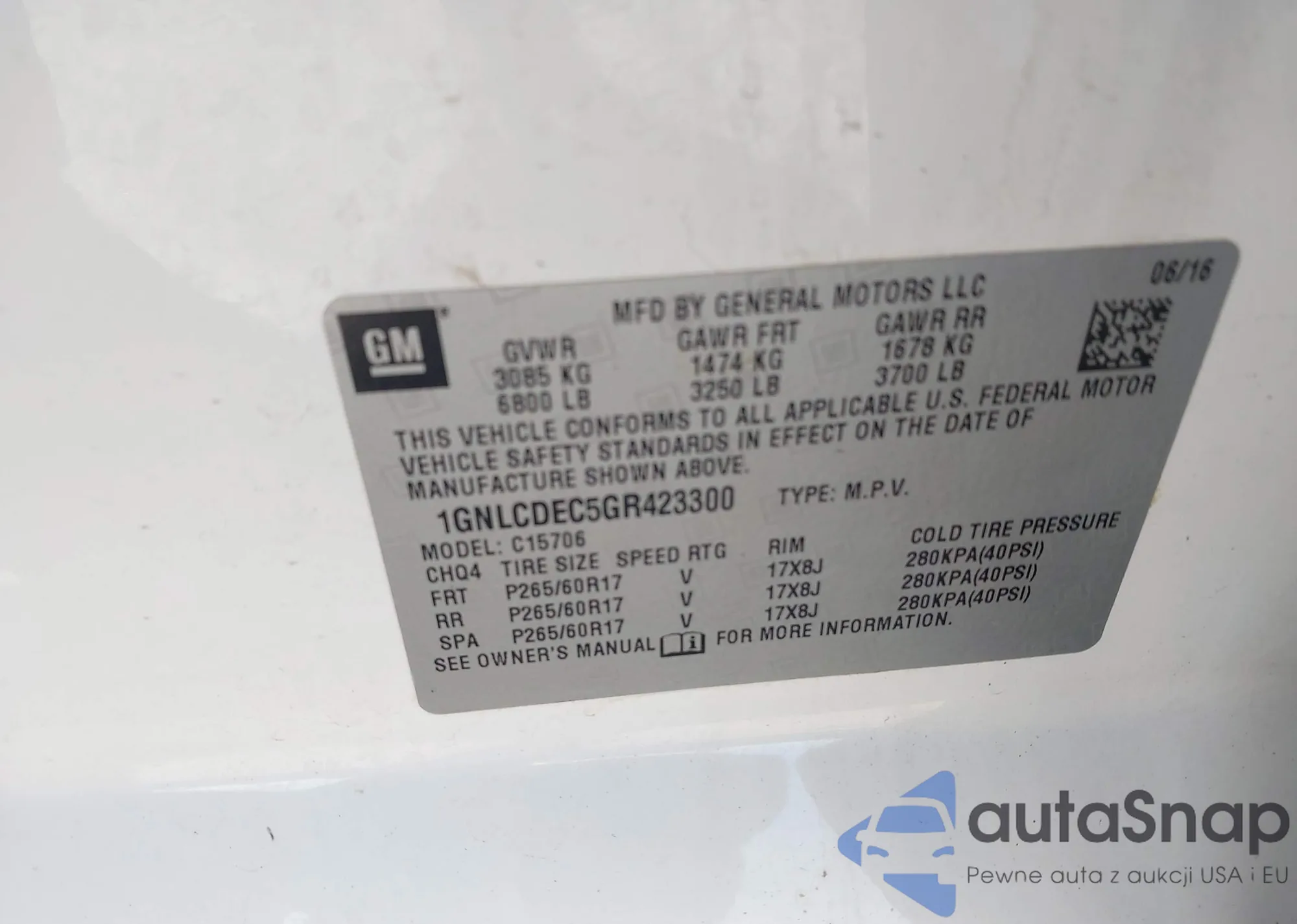 LOT: 44033914 VIN: KL7CJPSB8MB328145