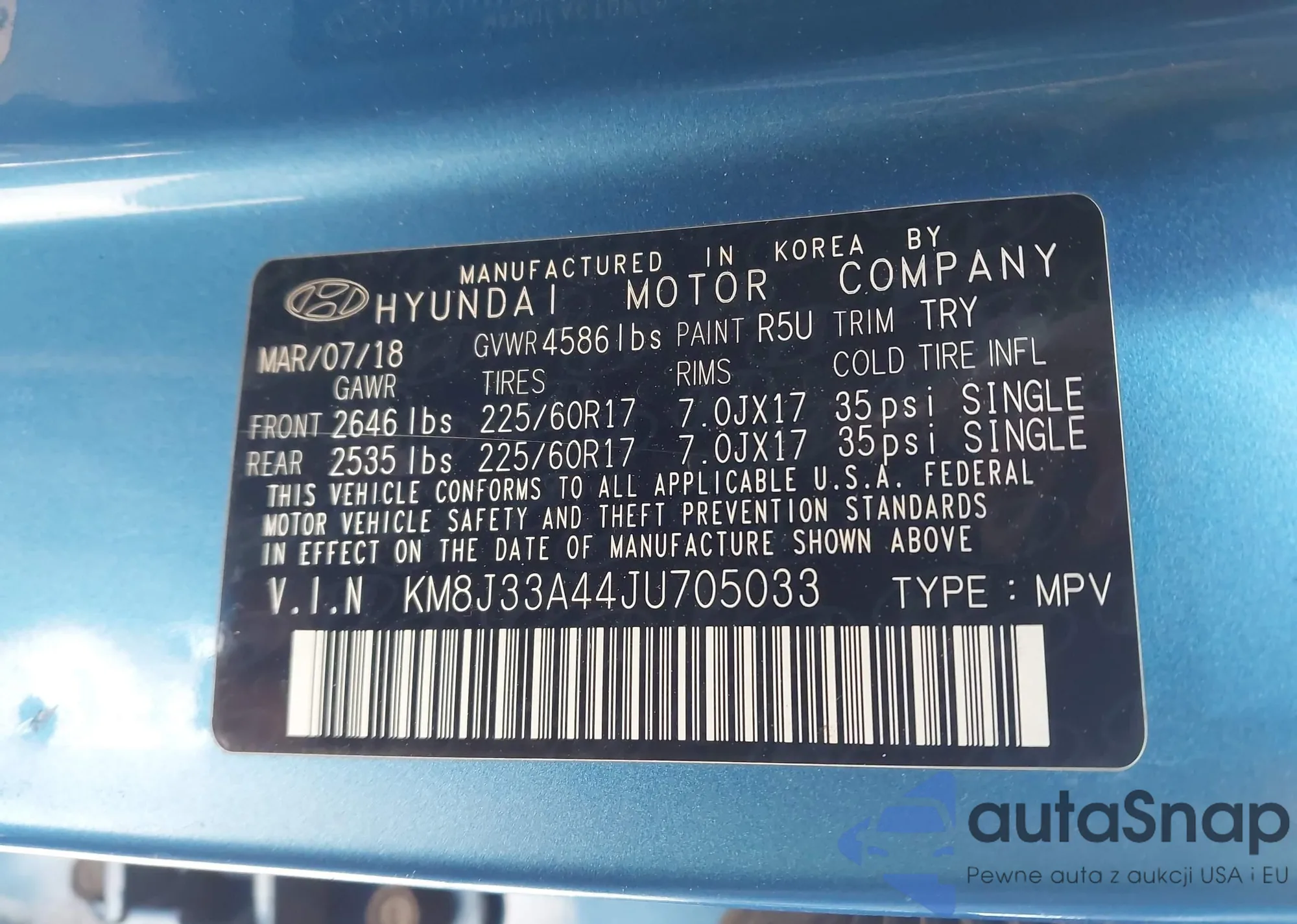 • VIN KM8J33A44JU705033