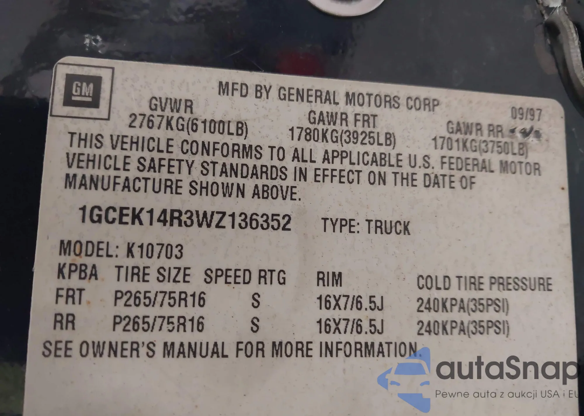 • VIN 1GCEK14R3WZ136352