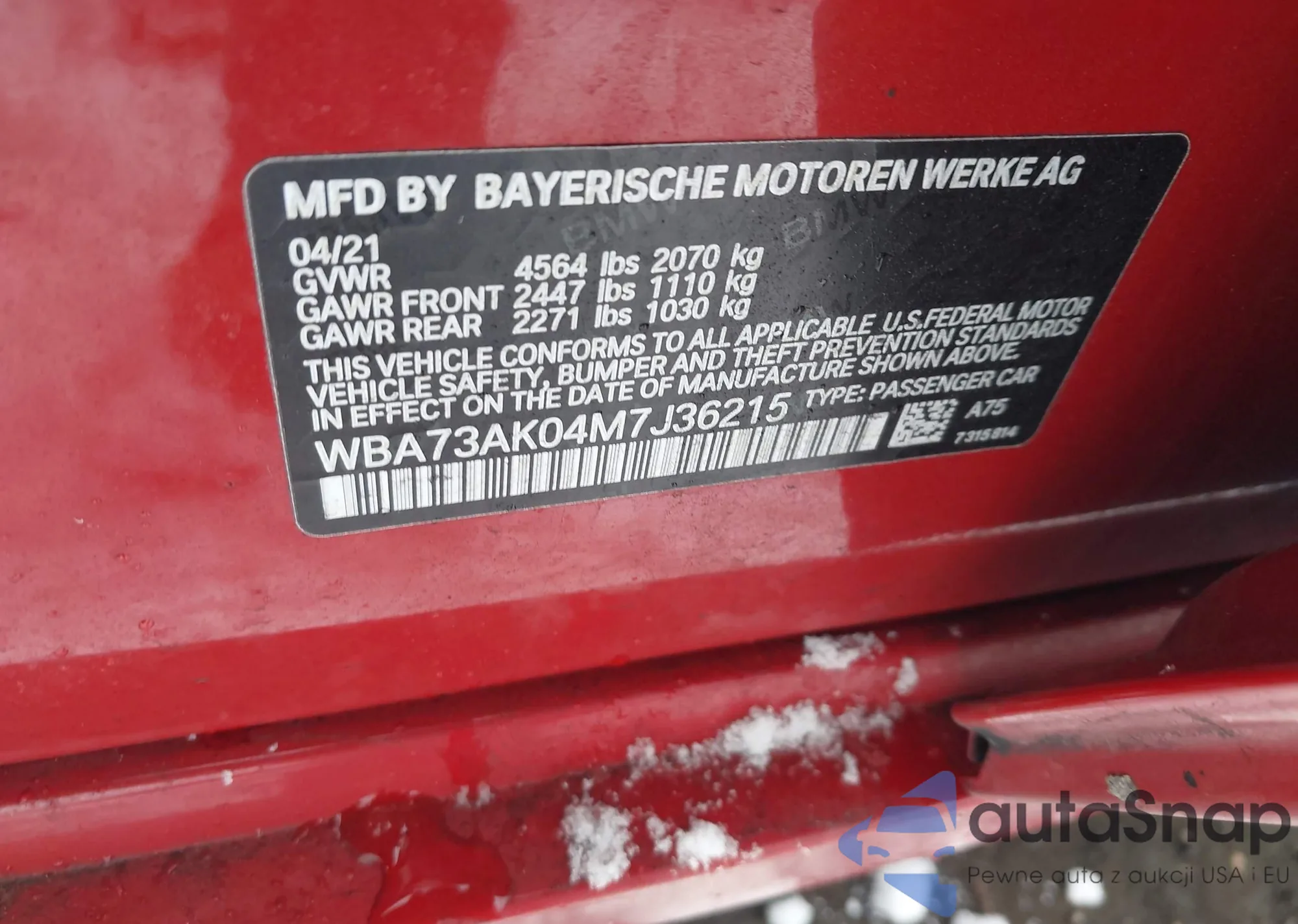 • VIN WBA73AK04M7J36215