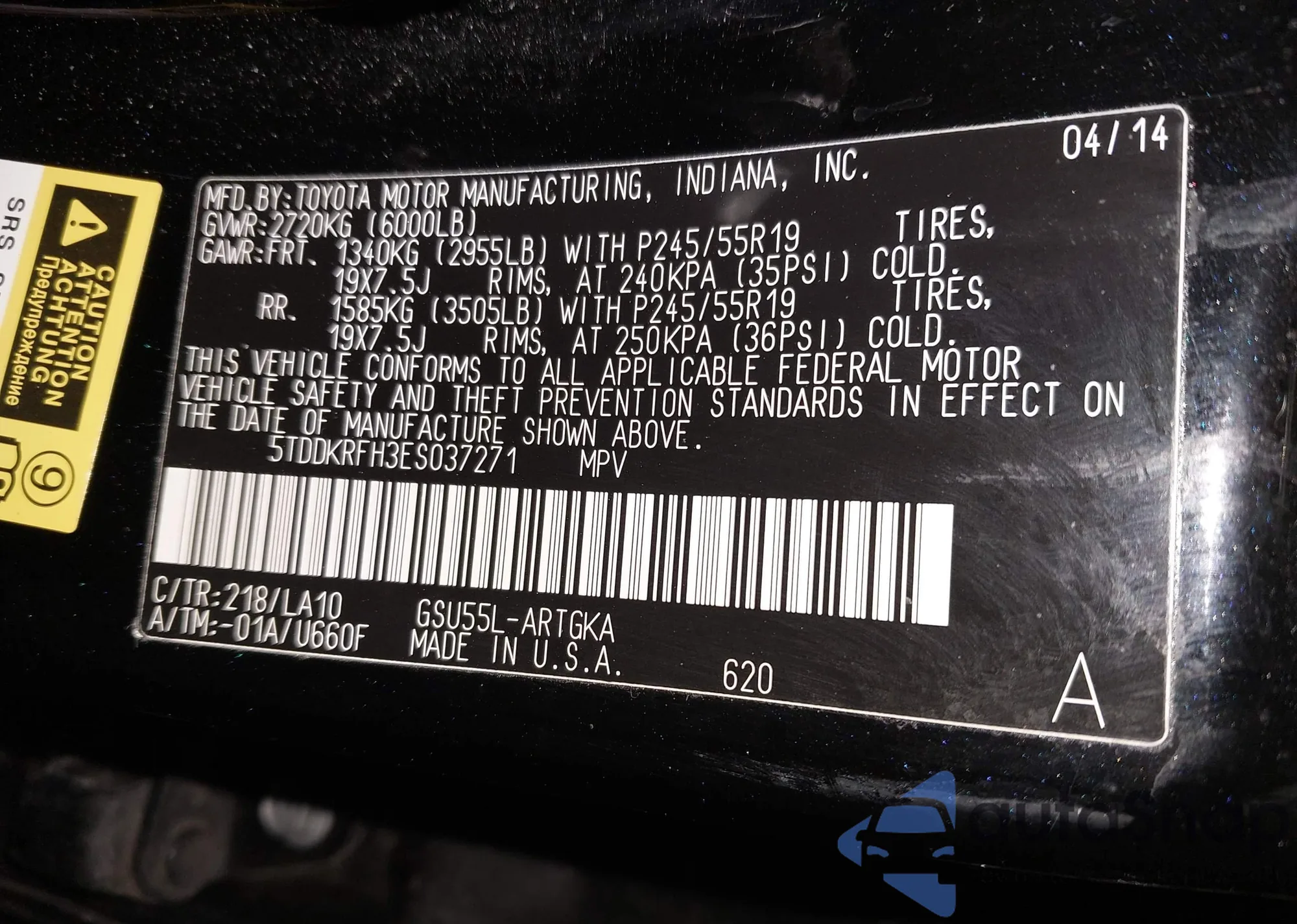 LOT: 44493542 VIN: JTEBT17R840036952
