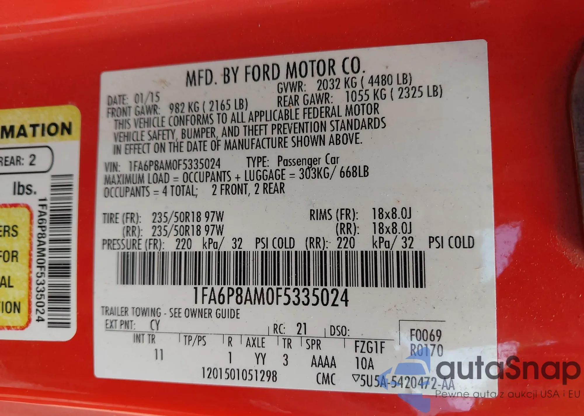 • VIN 1FA6P8AM0F5335024