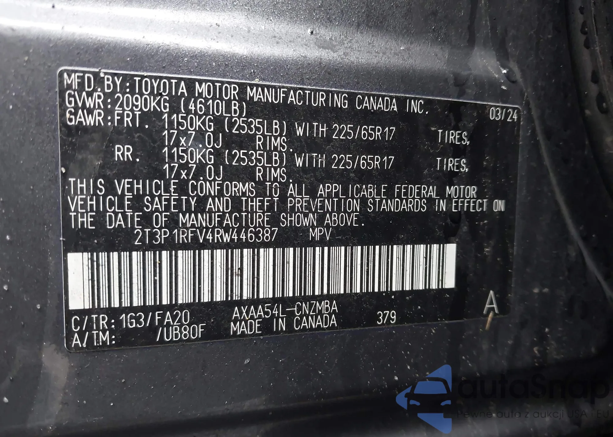 • VIN 2T3P1RFV4RW446387