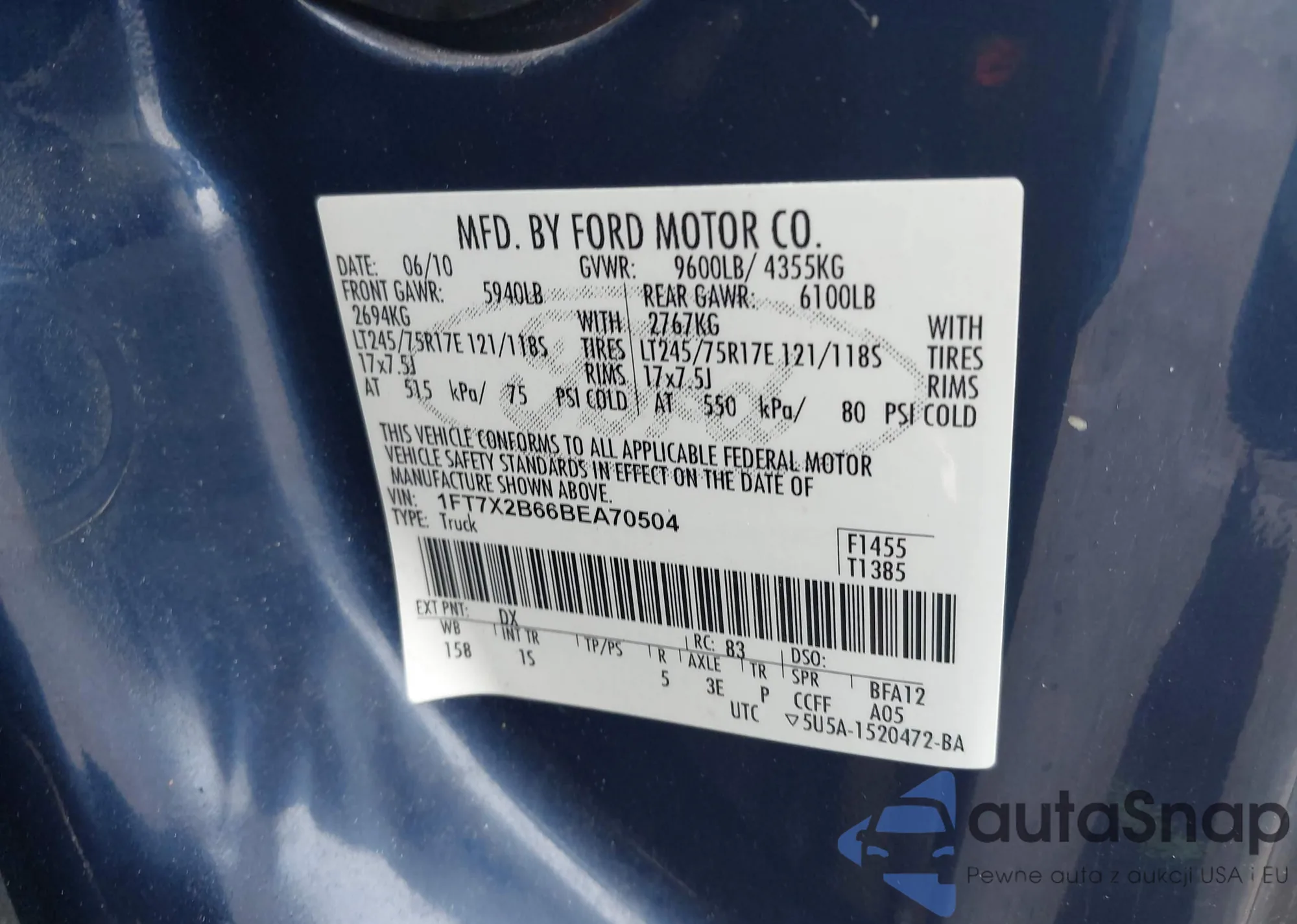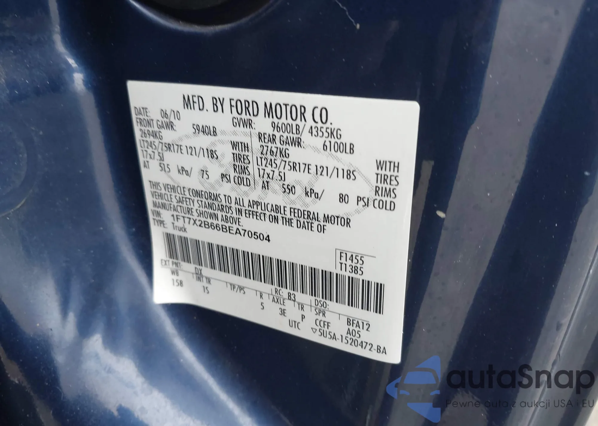 • VIN 1FT7X2B66BEA70504