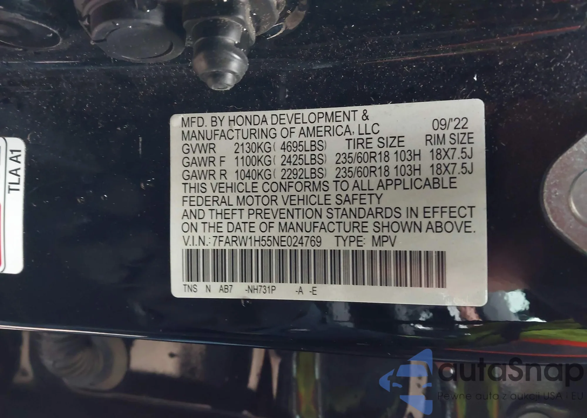 • VIN 7FARW1H55NE024769