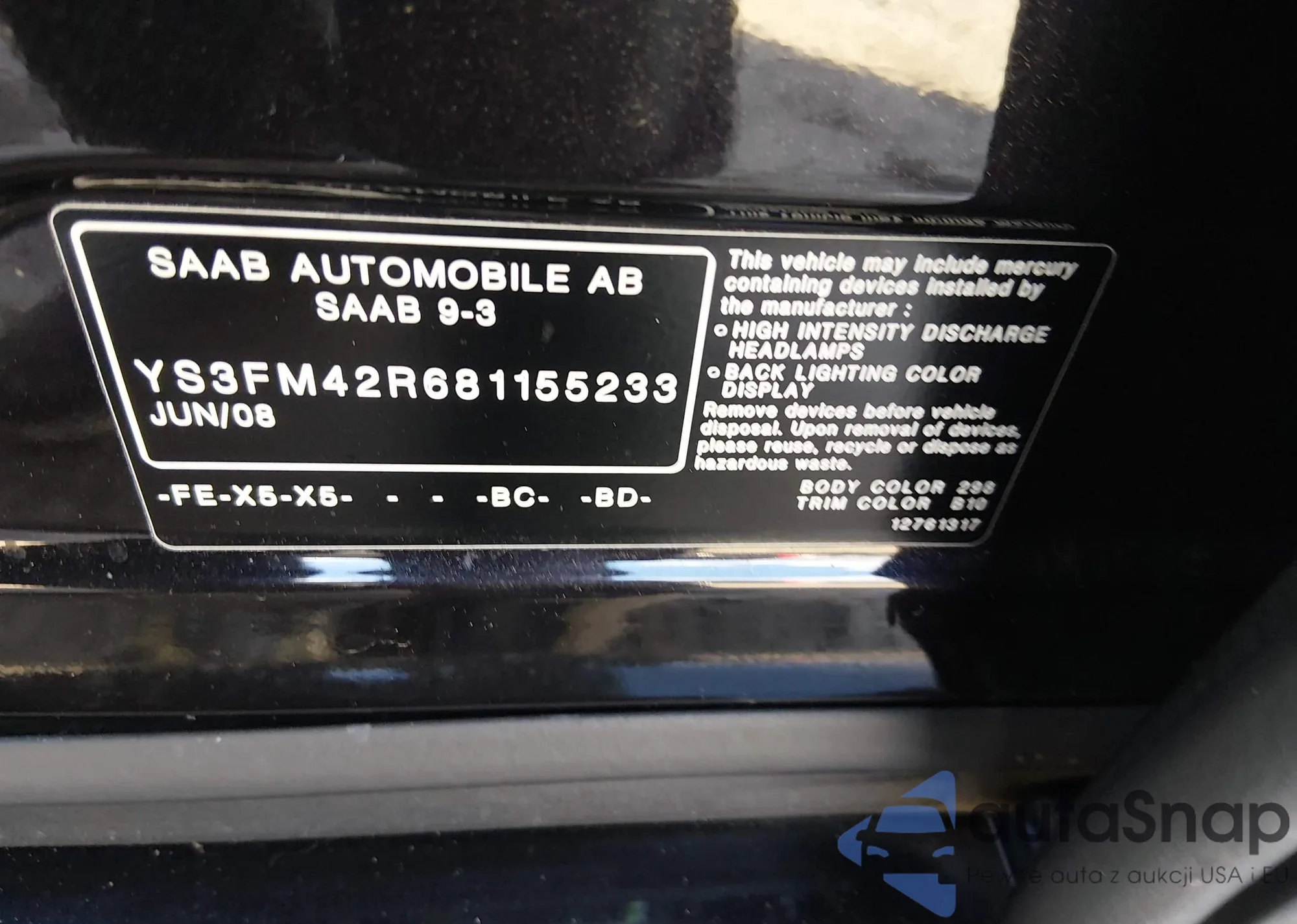 • VIN YS3FM42R681155233