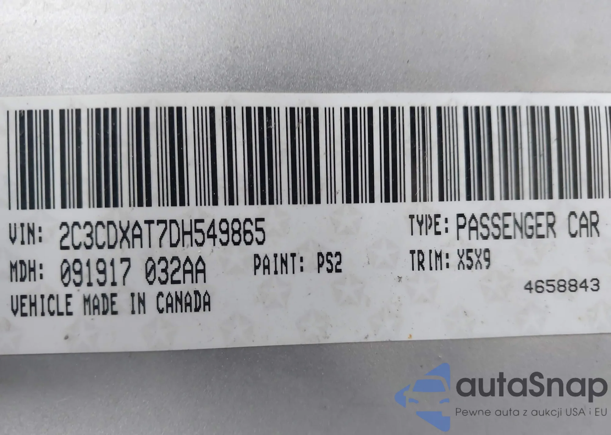 • VIN 2C3CDXAT7DH549865