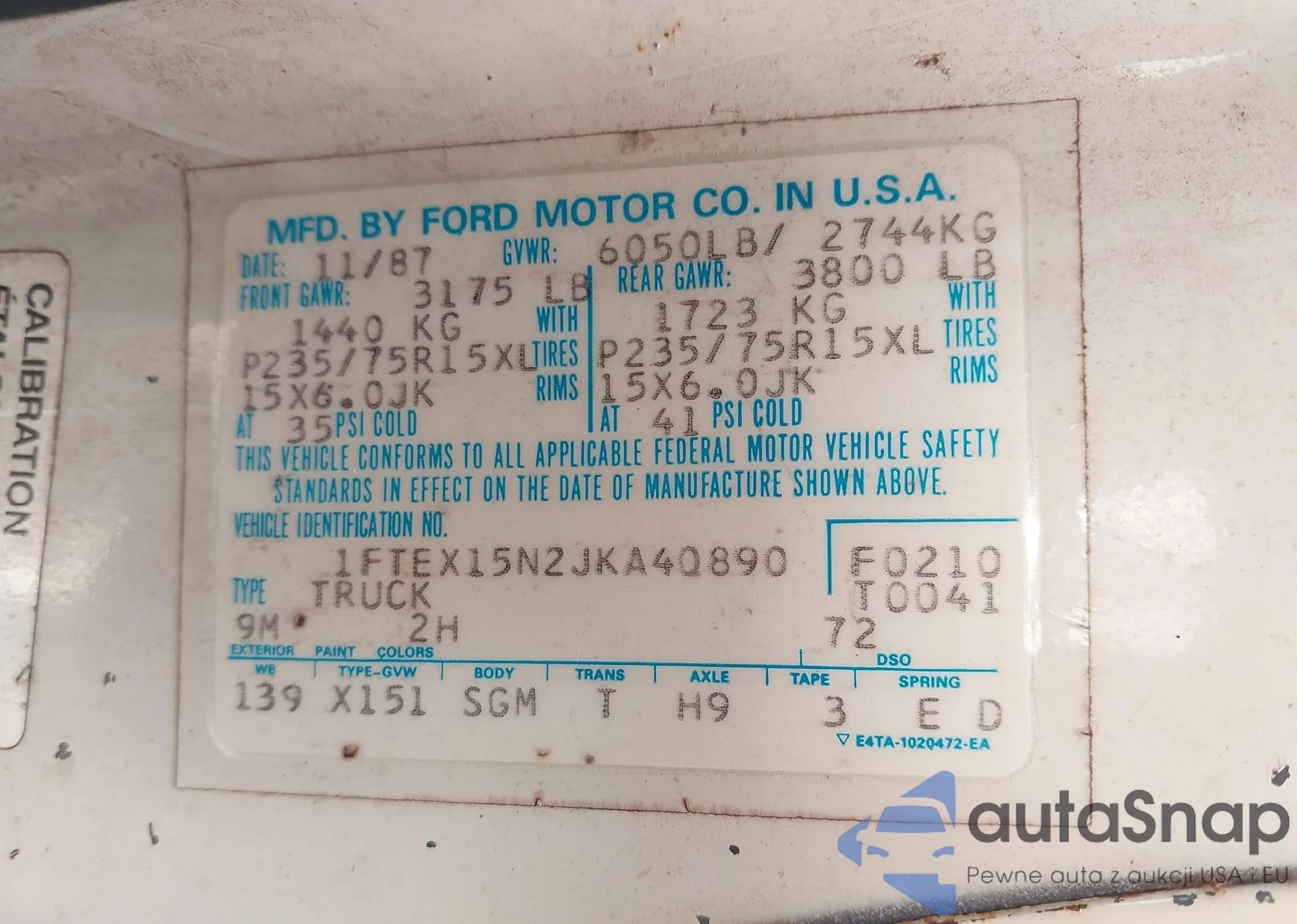 Samochód Ford F-150 1988 (VIN 1FTEX15N2JKA40890) sprzedaje go niezweryfikowany sprzedawca. Zalecamy raport Carfax i potwierdzenie możliwości rejestracji pojazdu przed zakupem.