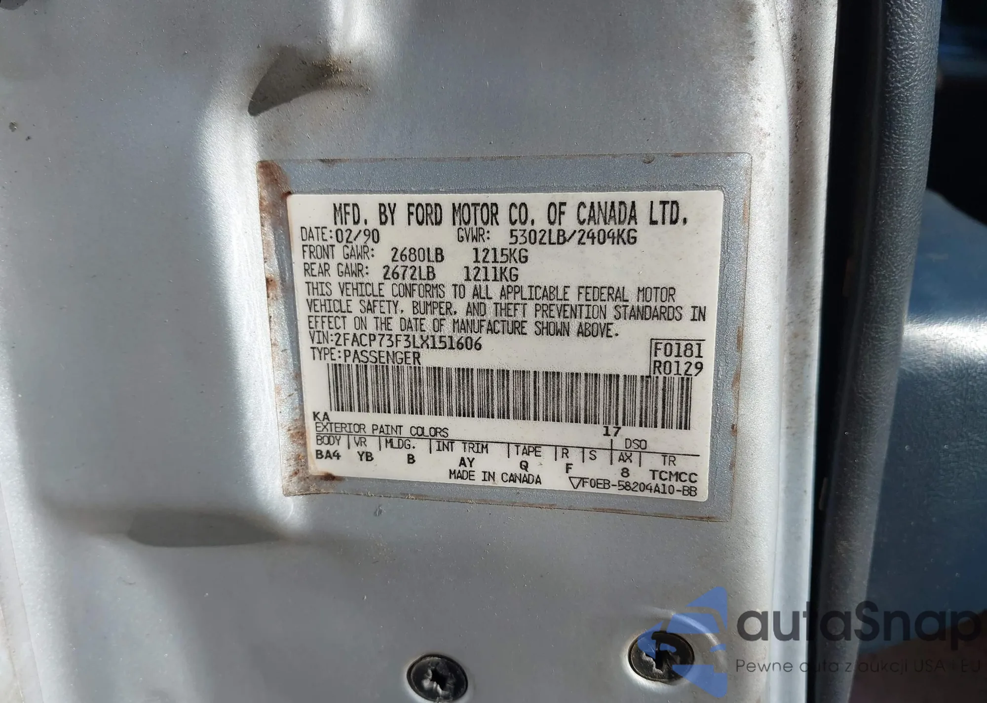 Samochód Ford Crown Victoria 1990 (VIN 2FACP73F3LX151606) sprzedaje go niezweryfikowany sprzedawca. Zalecamy raport Carfax i potwierdzenie możliwości rejestracji pojazdu przed zakupem.