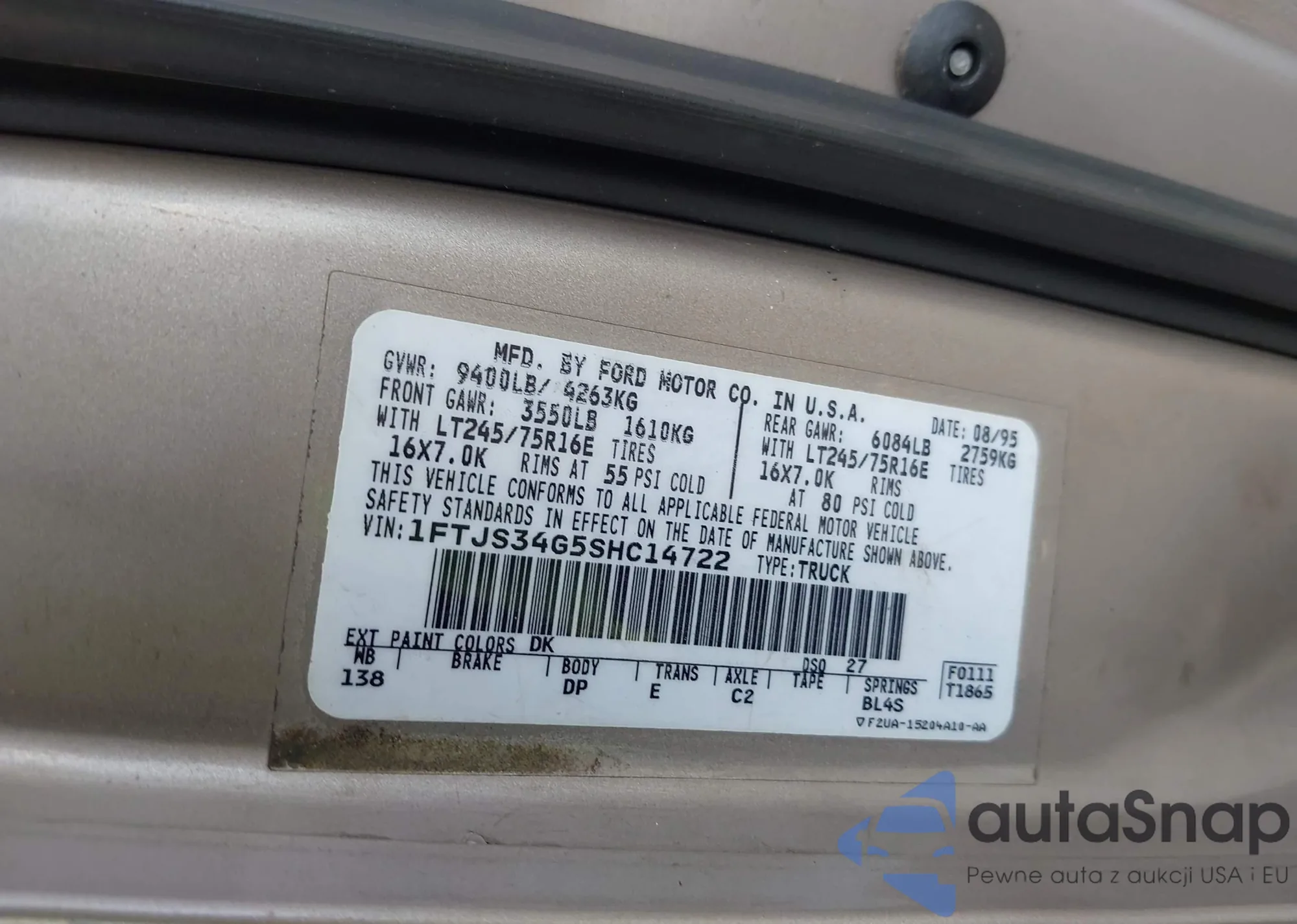 • VIN: 1FTJS34G5SHC14722