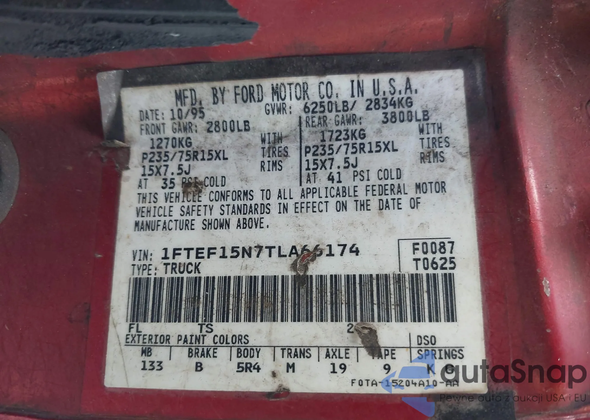 Samochód Ford F-150 1996 (VIN 1FTEF15N7TLA66174) nie był wcześniej licytowany. Dokumenty są czyste, przebieg odpowiada lub jest niższy niż średnia rynku. Sprzedaje go firma ubezpieczeniowa – polecamy zakup. Dostawa do portu zajmie ok. 6–8 tygodni.