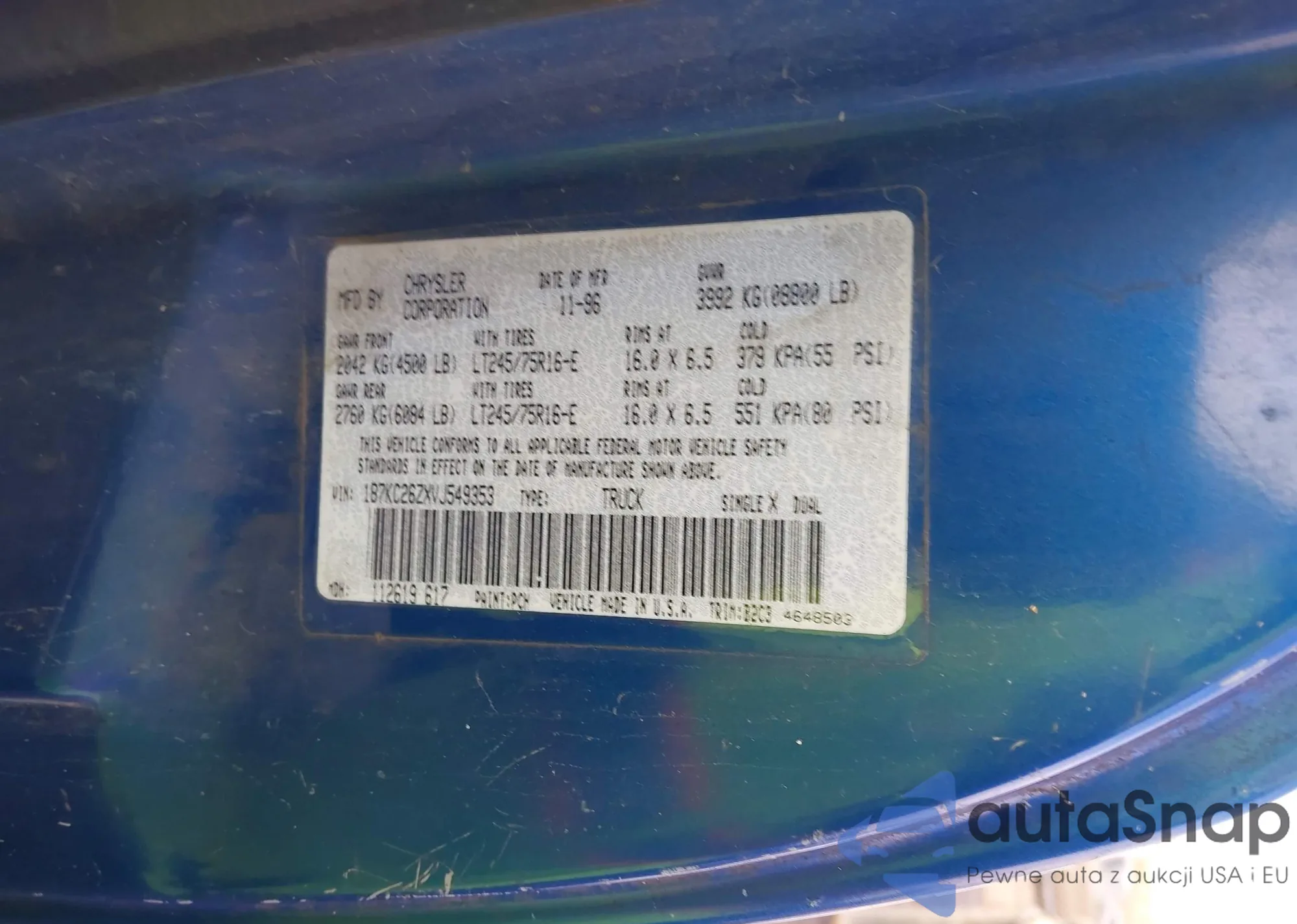 • VIN: 1B7KC26ZXVJ549353