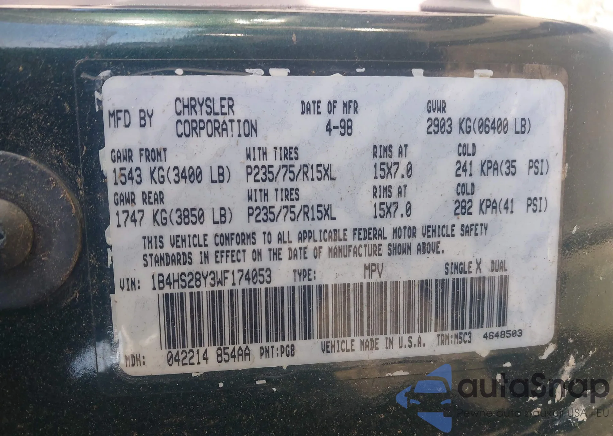 • VIN: 1B4HS28Y3WF174053