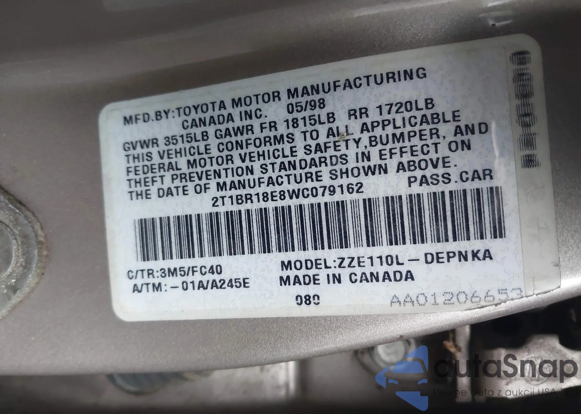VIN: 2T1BR18E8WC079162