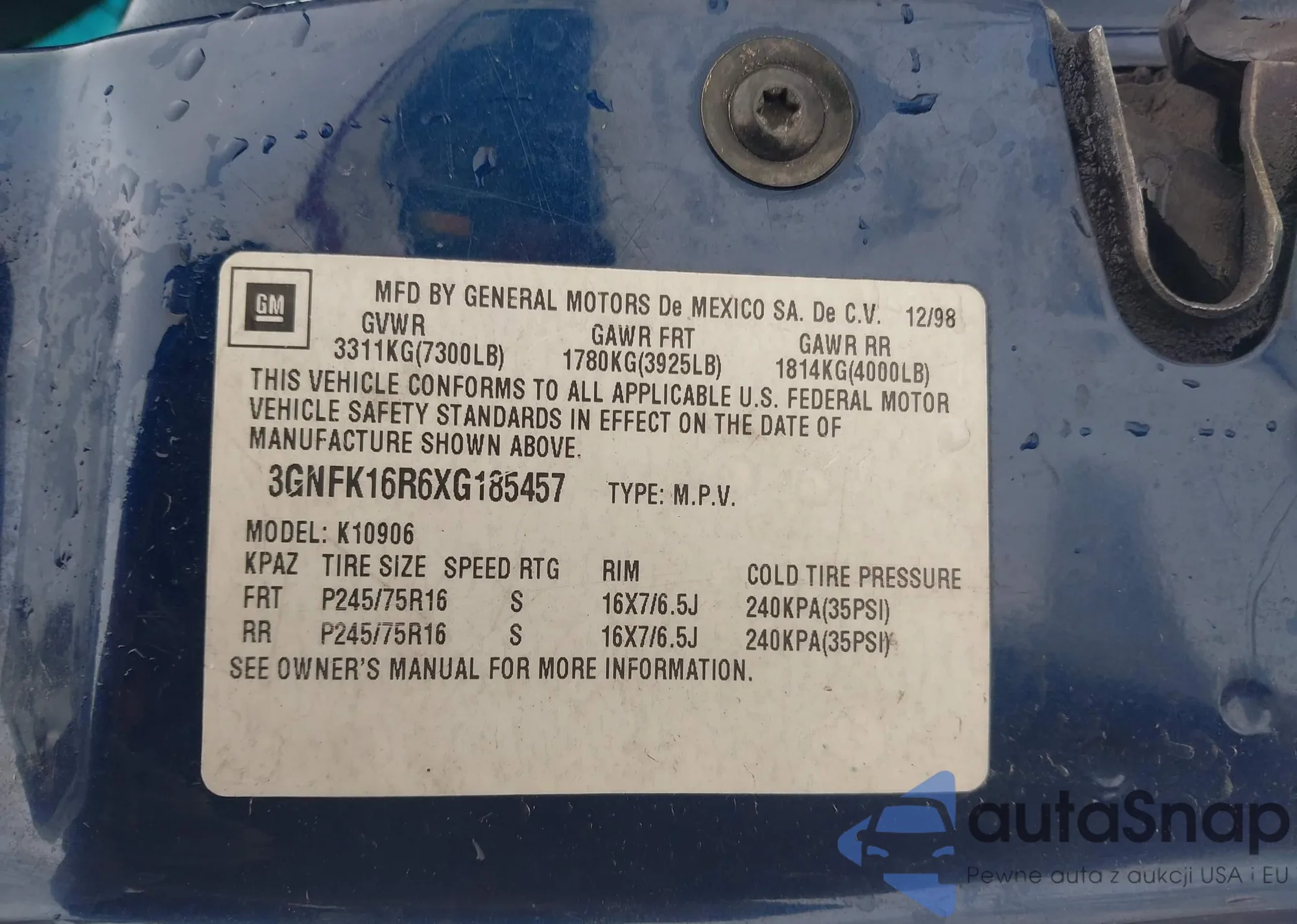 Samochód Chevrolet Express 1999 (VIN 3GNFK16R6XG185457) był już licytowany 1 razy i/lub sprzedaje go niezweryfikowany sprzedawca. Zalecamy raport Carfax i potwierdzenie możliwości rejestracji pojazdu przed zakupem.