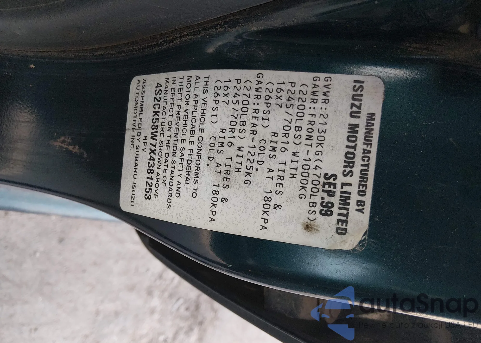 Isuzu Rodeo 1999 – Historia pojazdu (sprzedany na IAAI)